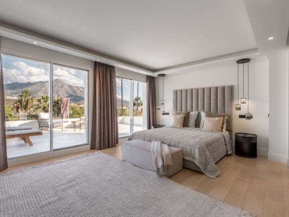 Located in the exclusive area of Marbella, this impressive villa offers an unparalleled living experience. With an elegant and modern design, the property is just 3 km from the sea, allowing you to enjoy the sea breeze and the region’s privileged climate. The villa features five bedrooms and five bathrooms, providing ample and comfortable space for the whole family. Every detail has been carefully considered to offer maximum comfort and luxury.