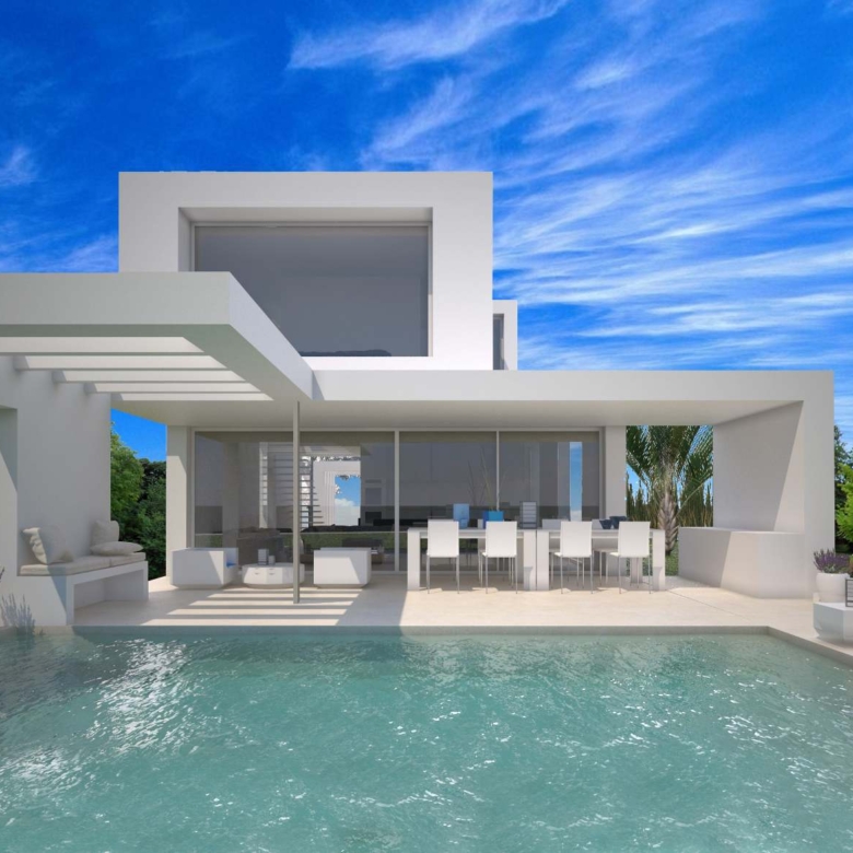 A unique designed new construction project, on a large flat plot with sea views in the, sought-after area of El Portet close to the beautiful beach and the amenities.