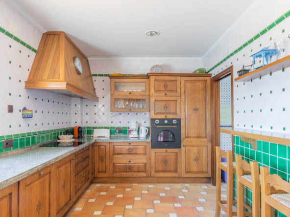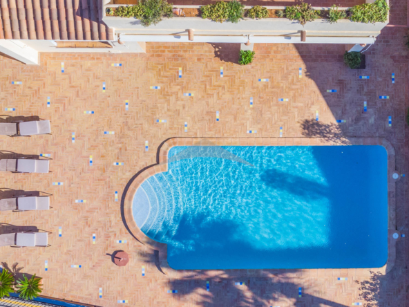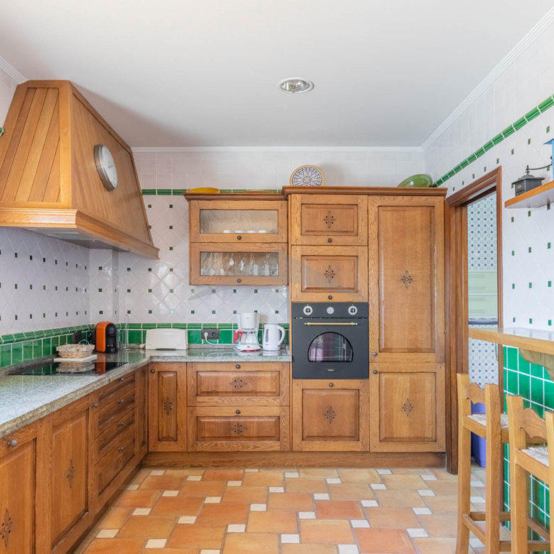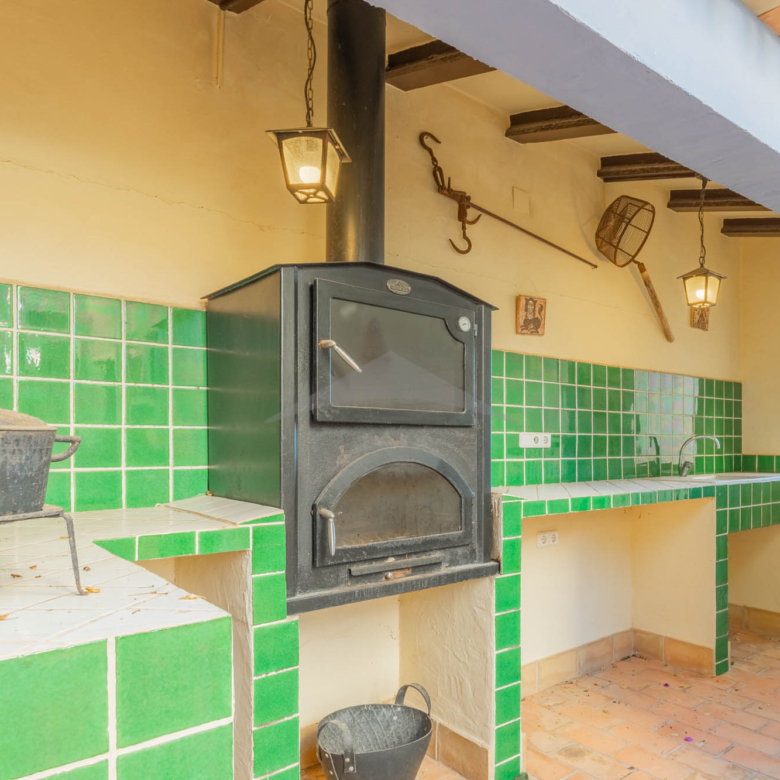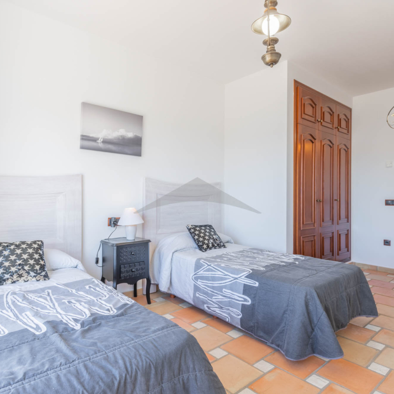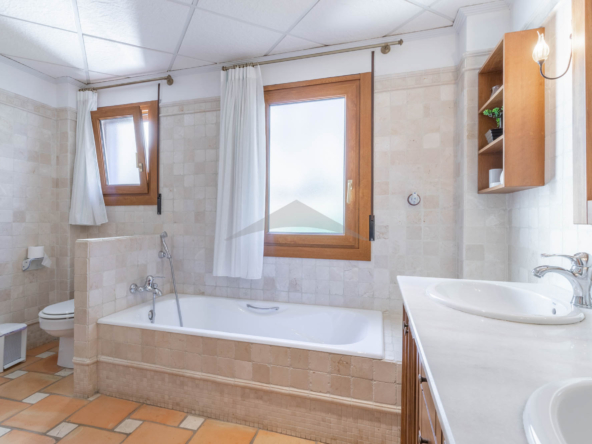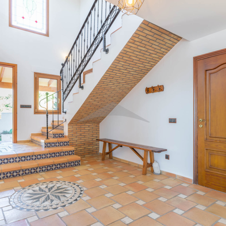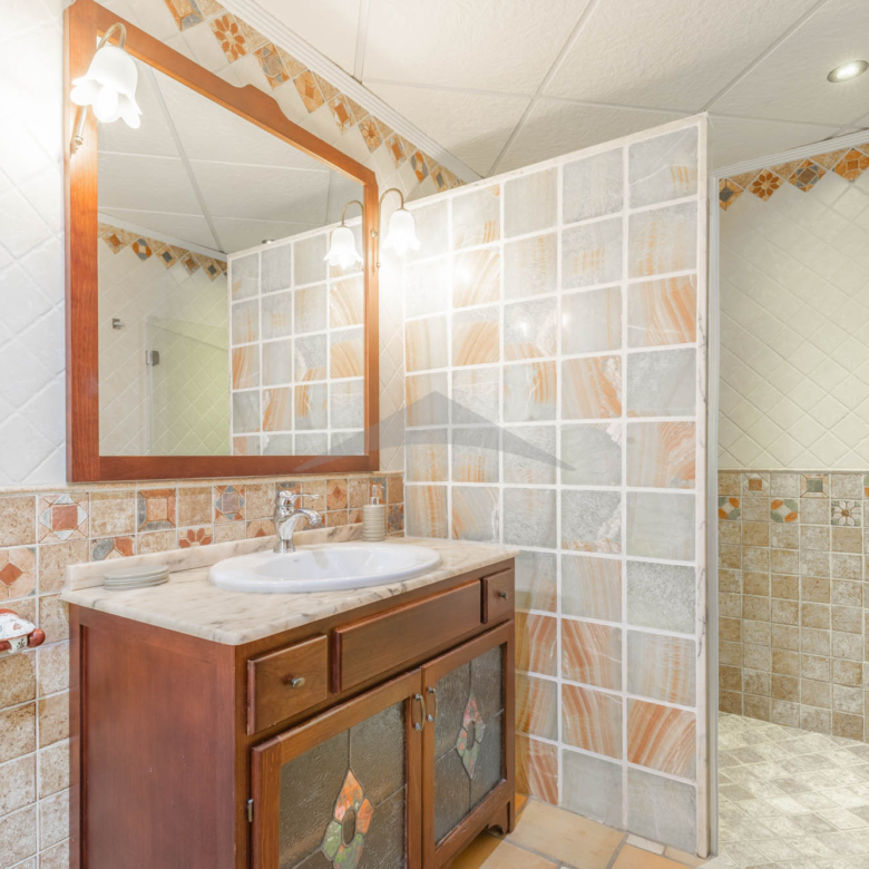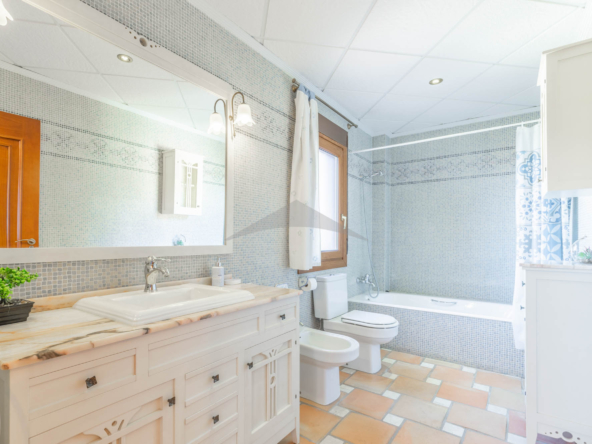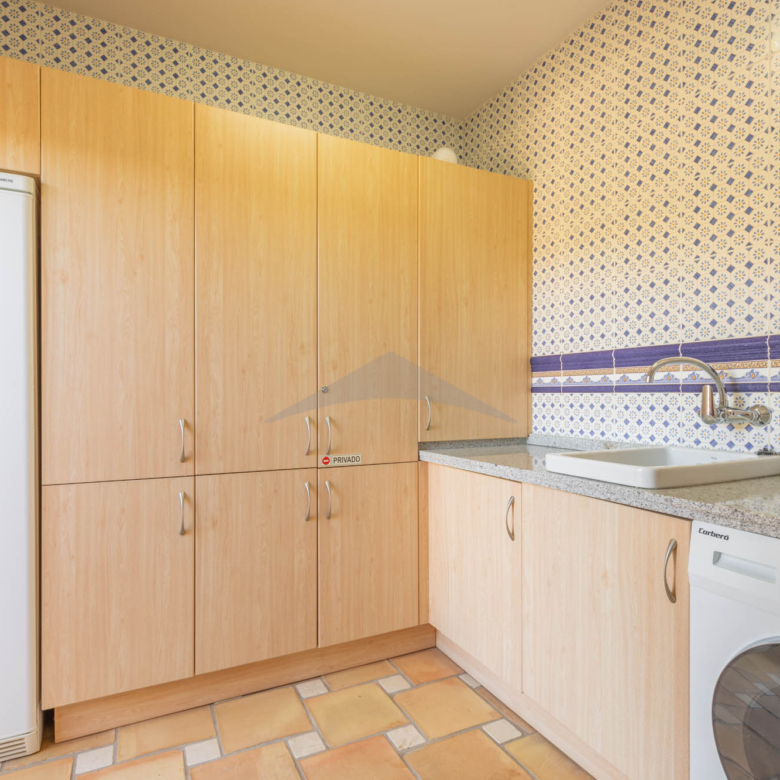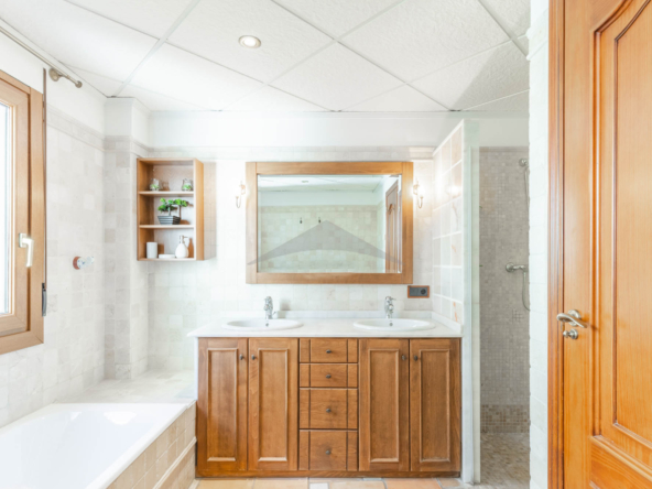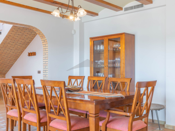 This Villa Just a Few Steps from El Portet Beach consists of two floors connected by an internal staircase. On the ground floor of the house, pool level, which can be entered through the beautiful front door, leads into the spacious living/dining room with wood-burning stove. This room has direct access to the outside terrace through the large sliding windows. Next to the living/dining room is the large kitchen, fully equipped with quality appliances. A great advantage of this kitchen is the extra storage space that makes it a very practical kitchen. Also, the kitchen has direct access to the pool terrace and the naya. As well, on this floor you will find a double bedroom with ensuite bathroom.