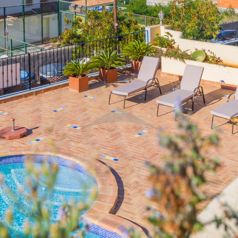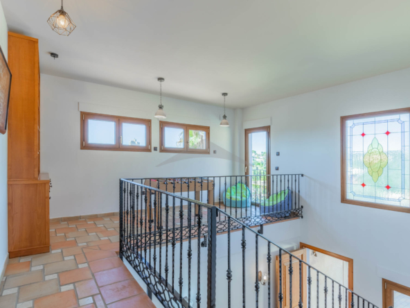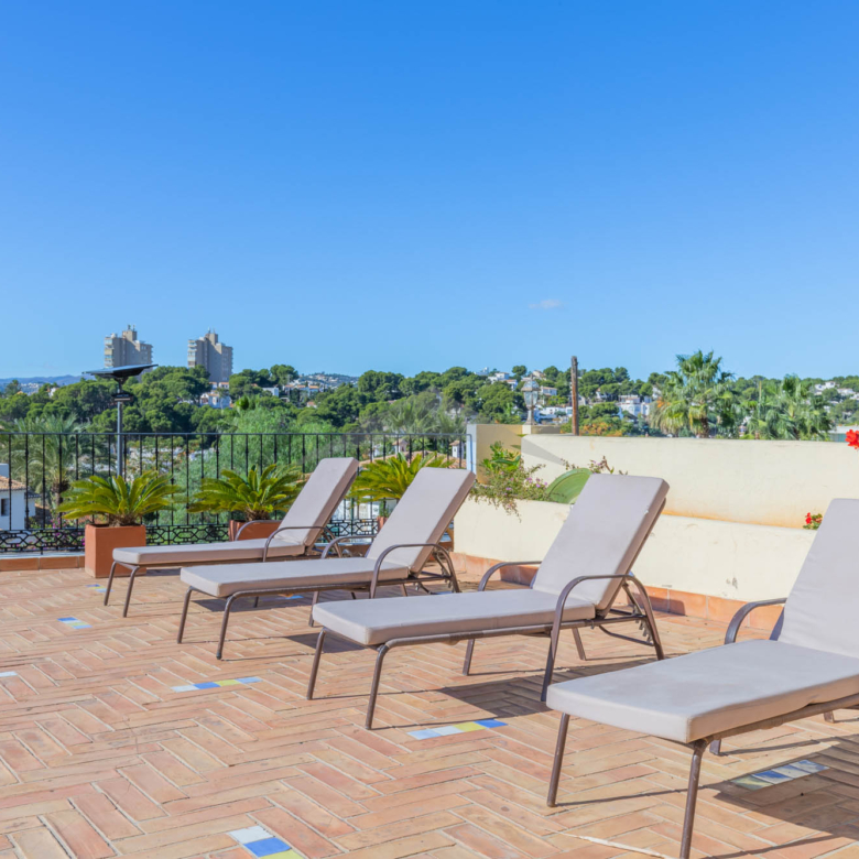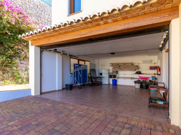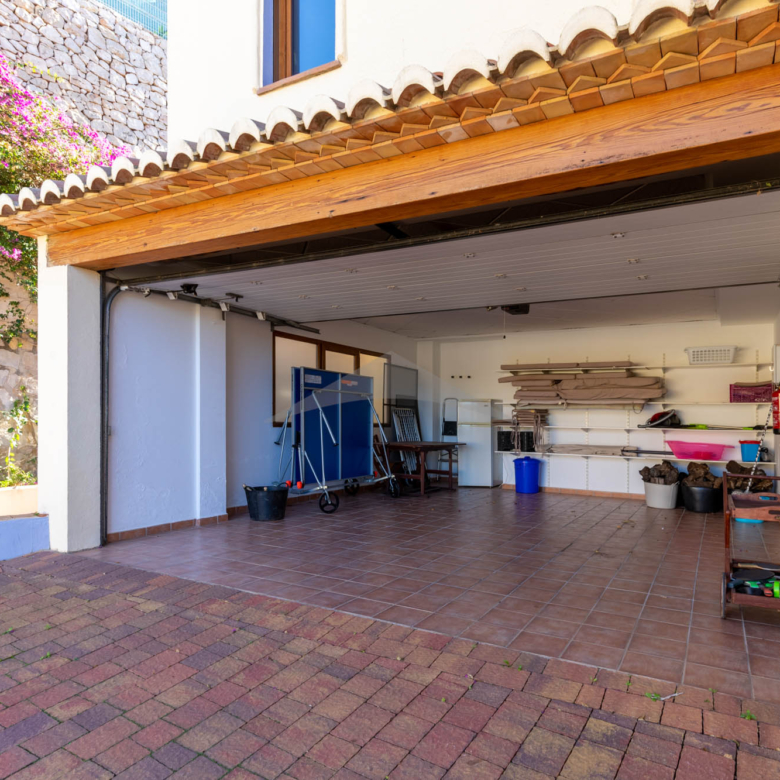 The internal staircase leads to the upper floor where there are three more double bedrooms with two bathrooms, one of which is ensuite. Two of the bedrooms have access to the upper terrace, from where you can enjoy the wonderful views of the sea. This beautiful house at only 300m from the beach of El Portet has a lot of outdoor space, a large swimming pool surrounded by a large terrace so you can enjoy the sun all day. The house also has a nice outdoor kitchen that ensures that outdoor living can be used optimally. The property is situated on an enclosed plot of 800 m2 with a parking area where you can park three cars plus two in the garage. Access to the property is via a ramp that goes up to the parking area.