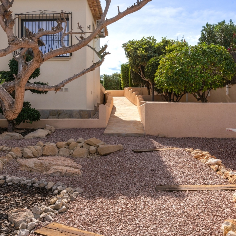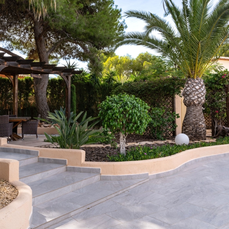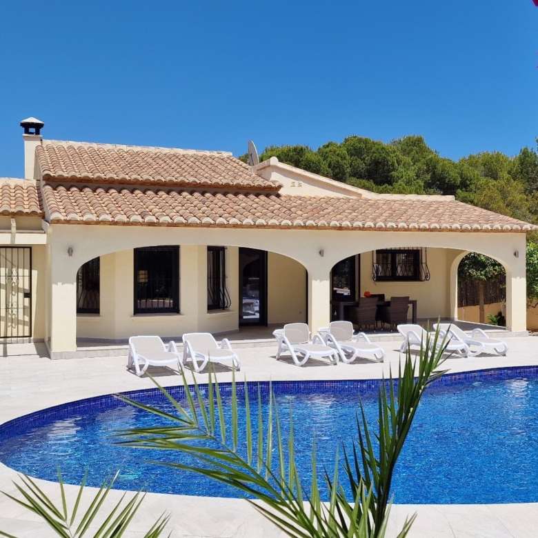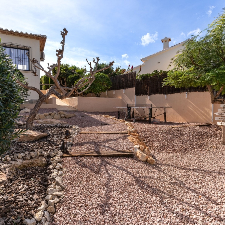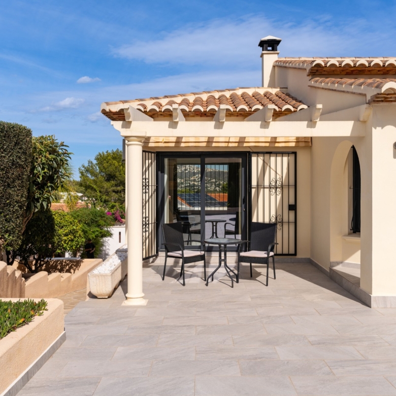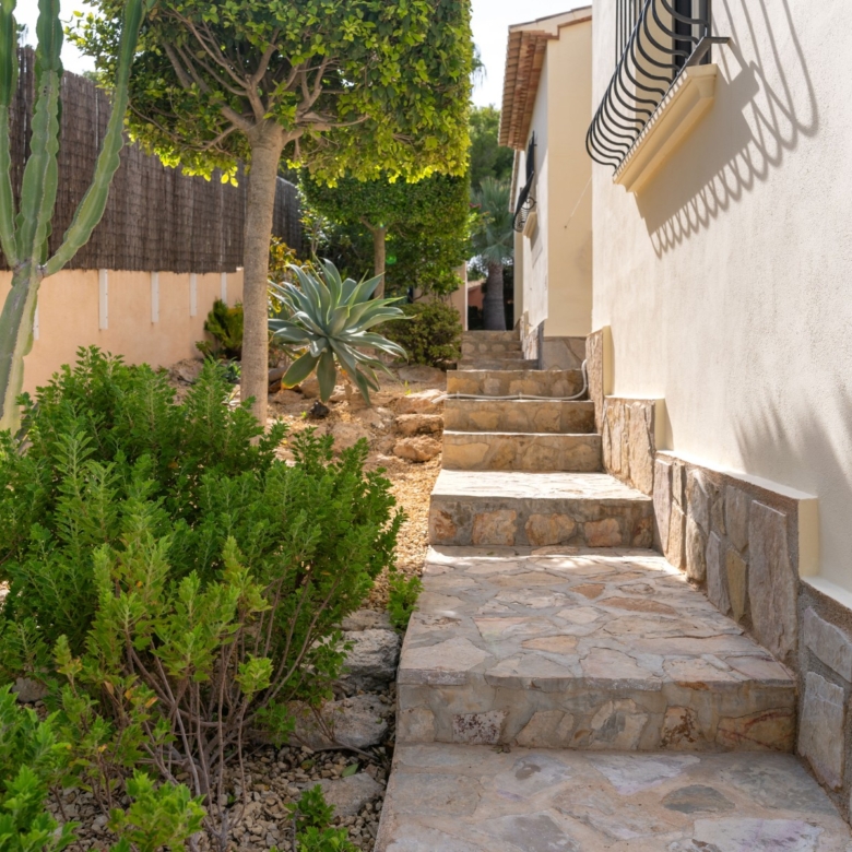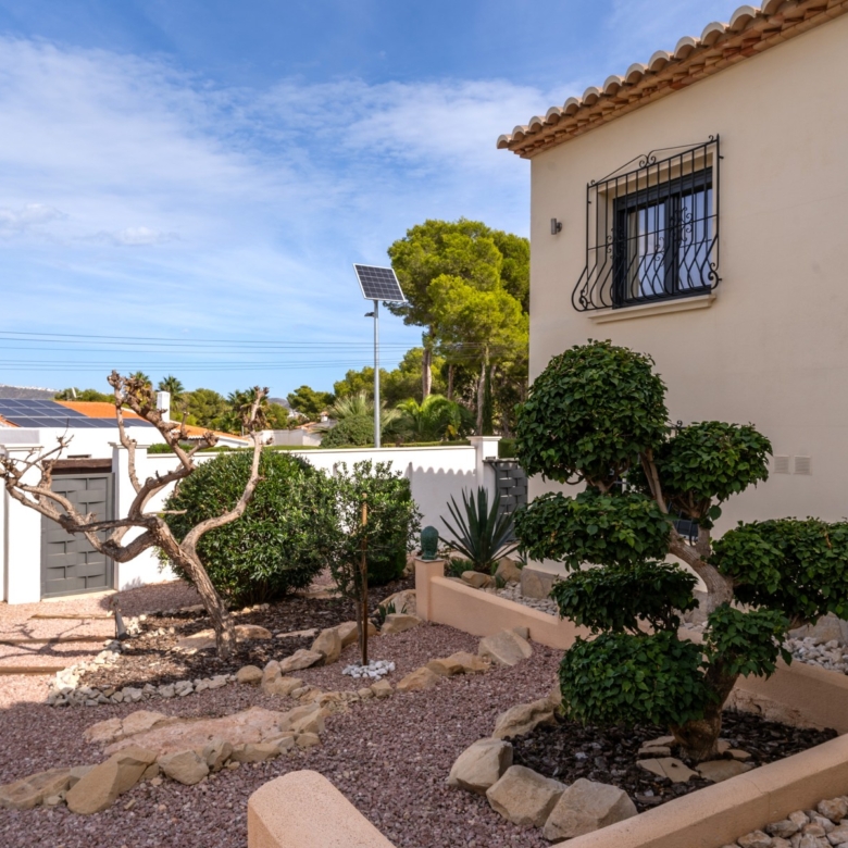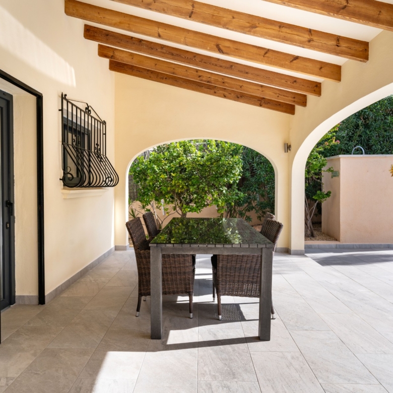 Fully renovated with high-quality materialsSouth orientation and fully private3 spacious bedrooms and 2 modern bathroomsModern open-plan kitchen with islandLarge living room with direct access to the covered terracePrivate pool with sunny terrace and gardenGarage and large storage roomGas central heating and air conditioningWalking distance to supermarkets, bars, restaurants, and the Moraira bay