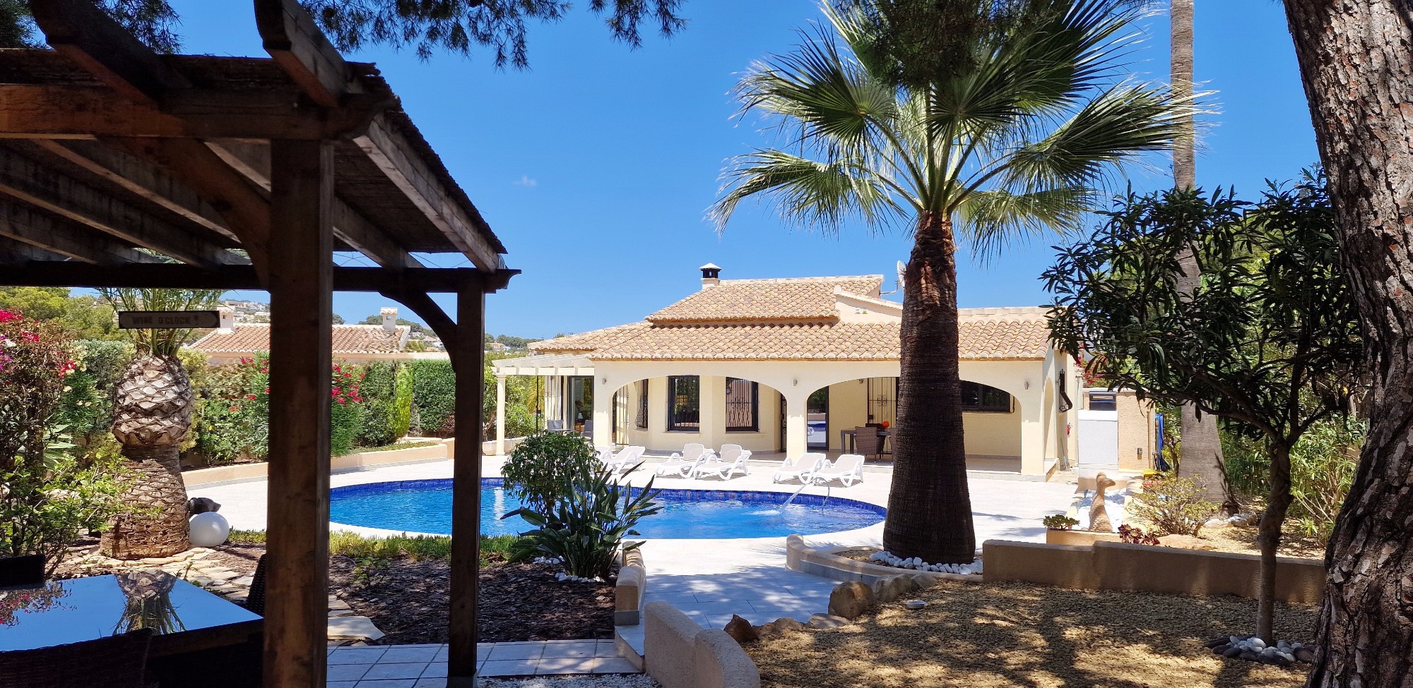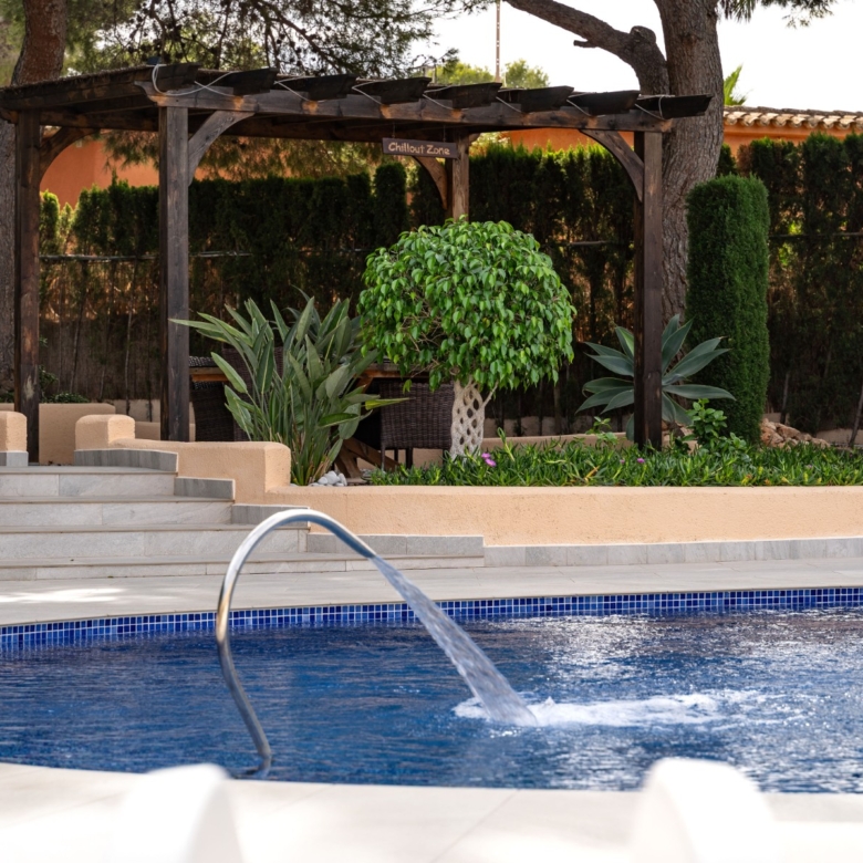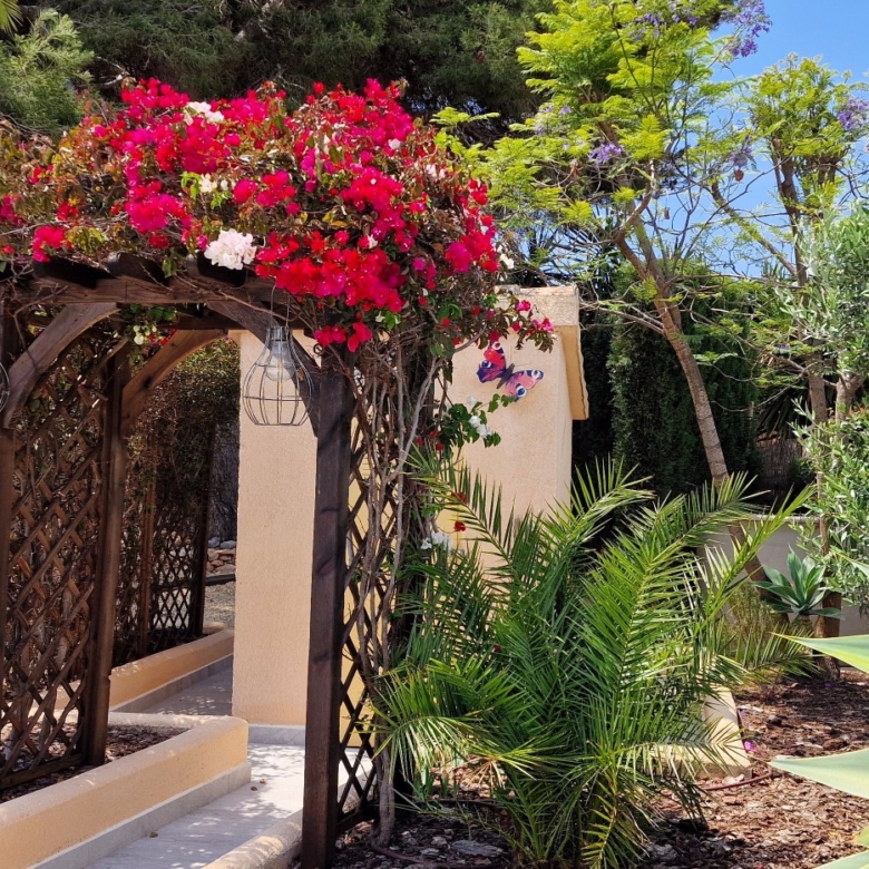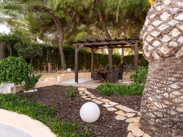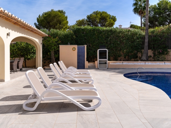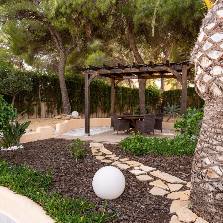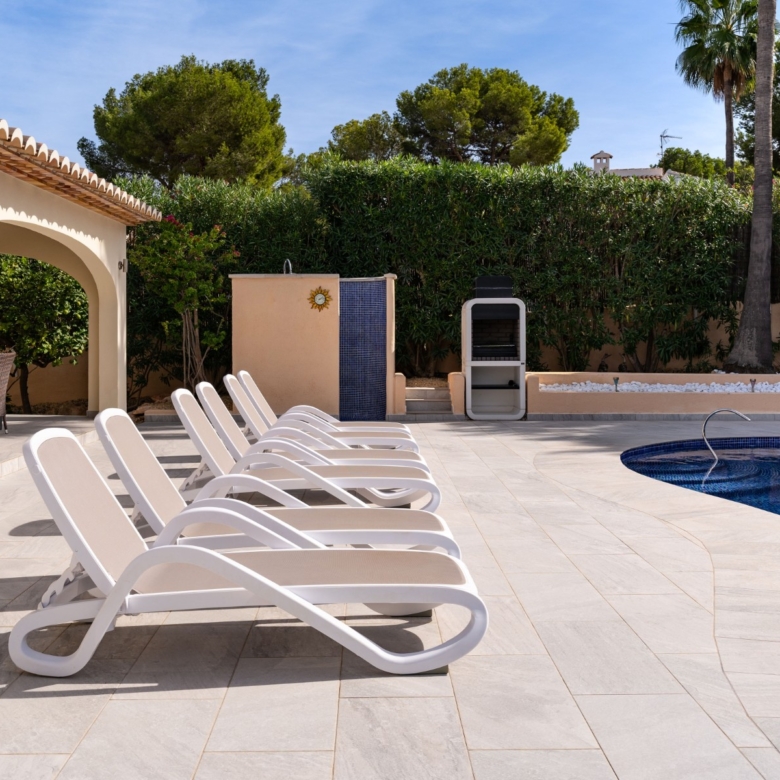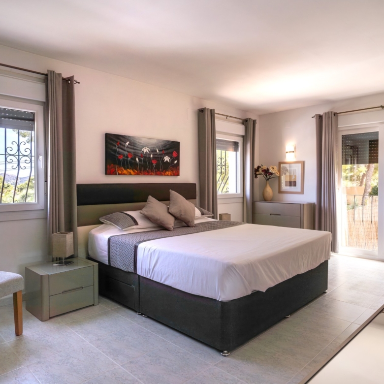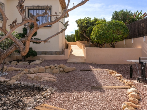 Fully renovated with high-quality materialsSouth orientation and fully private3 spacious bedrooms and 2 modern bathroomsModern open-plan kitchen with islandLarge living room with direct access to the covered terracePrivate pool with sunny terrace and gardenGarage and large storage roomGas central heating and air conditioningWalking distance to supermarkets, bars, restaurants, and the Moraira bay