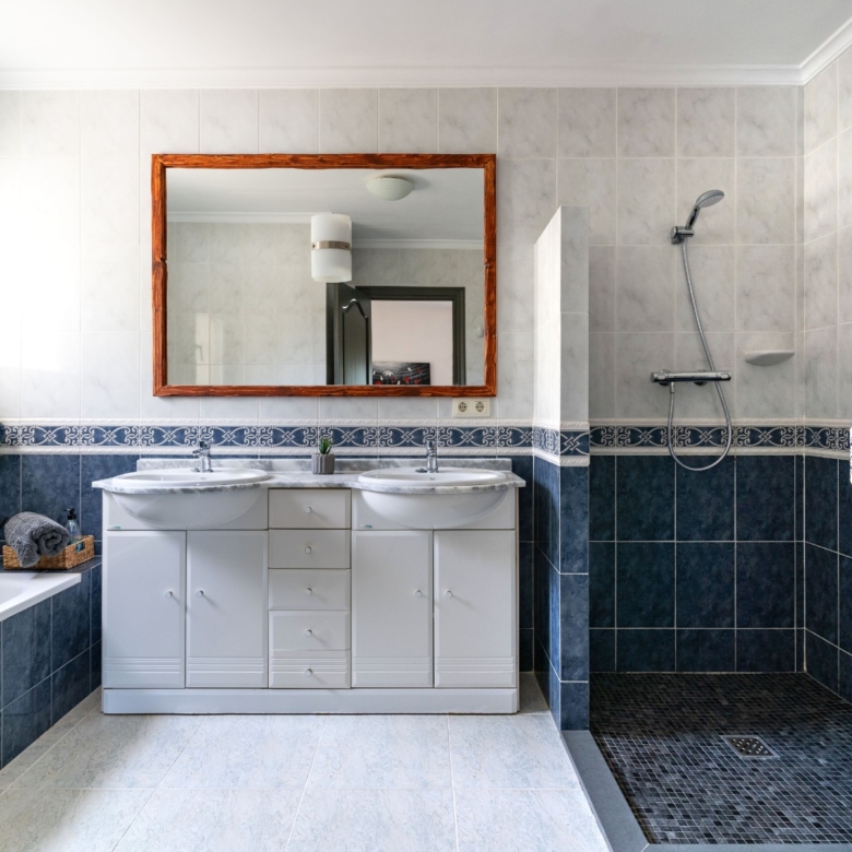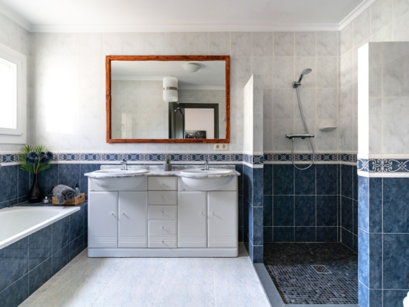 Bedrooms and BathroomsThe villa boasts three spacious bedrooms. Two of the bedrooms share a modern bathroom with a walk-in shower. The master bedroom, however, offers an extra level of luxury with a private ensuite bathroom, complete with a spacious shower and a lovely bathtub, perfect for unwinding after a long day.