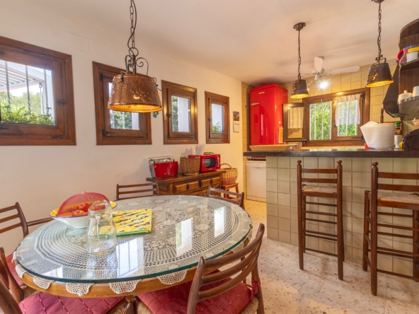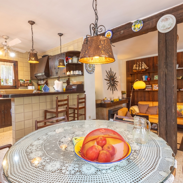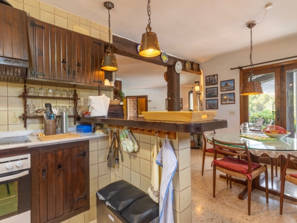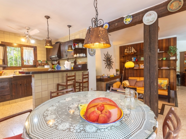 Set on a generous flat 2,200 m² plot, the villa spans two floors and features beautifully landscaped gardens, a private pool, and a full-size tennis court — all designed to make the most of the Mediterranean lifestyle. The entire plot is enclosed by a natural stone wall.