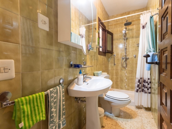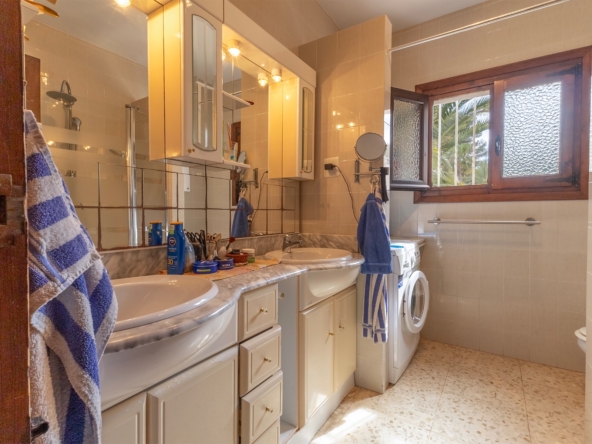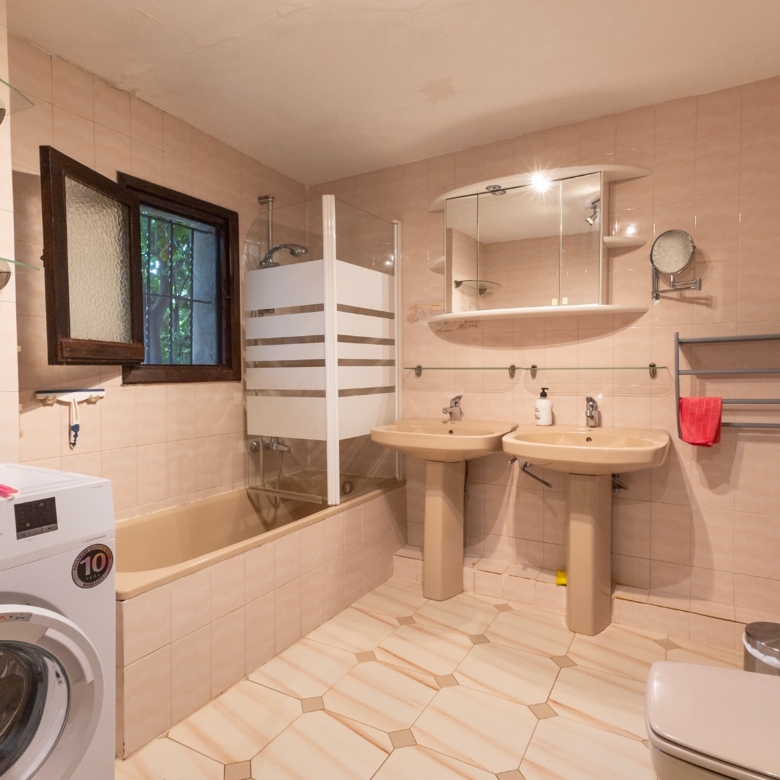 Inside, the villa offers a spacious layout with naturally lit living spaces, 5 well-appointed bedrooms, and 4 modern bathrooms. The lower floor can be divided into 2 guest rooms, offering privacy for visitors or excellent rental potential. Its elevated position allows for partial sea views, adding to the property’s appeal.