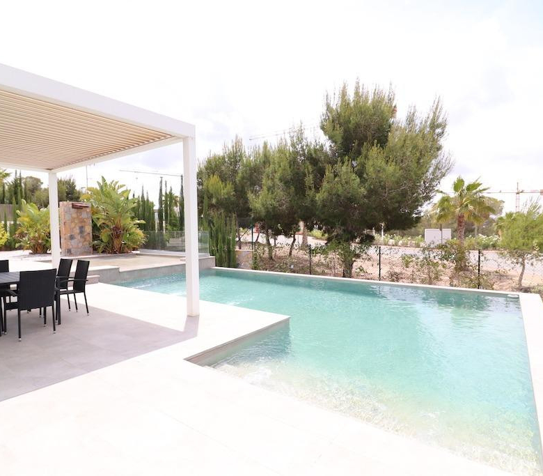 Located in Las Colinas Golf [amp;] Country Club. . . Beautiful detached south facing corner villa, with a plot of 580 m2 and a two storey house of 120 m2.. . The house has 3 bedrooms (1 on the ground floor), 2 bathrooms, 1 toilet, spacious living-dining room with integrated kitchen with island, private swimming pool, 3 terraces (2 on the upper part and a big one around the swimming pool) and driveway. . . Sold furnished and with air conditioning. It has Tourist Licence for renting.