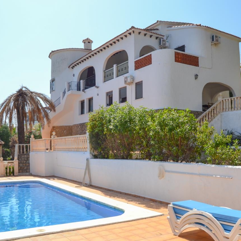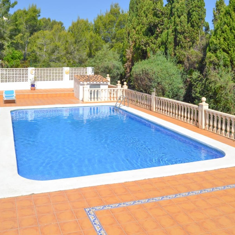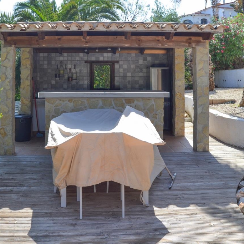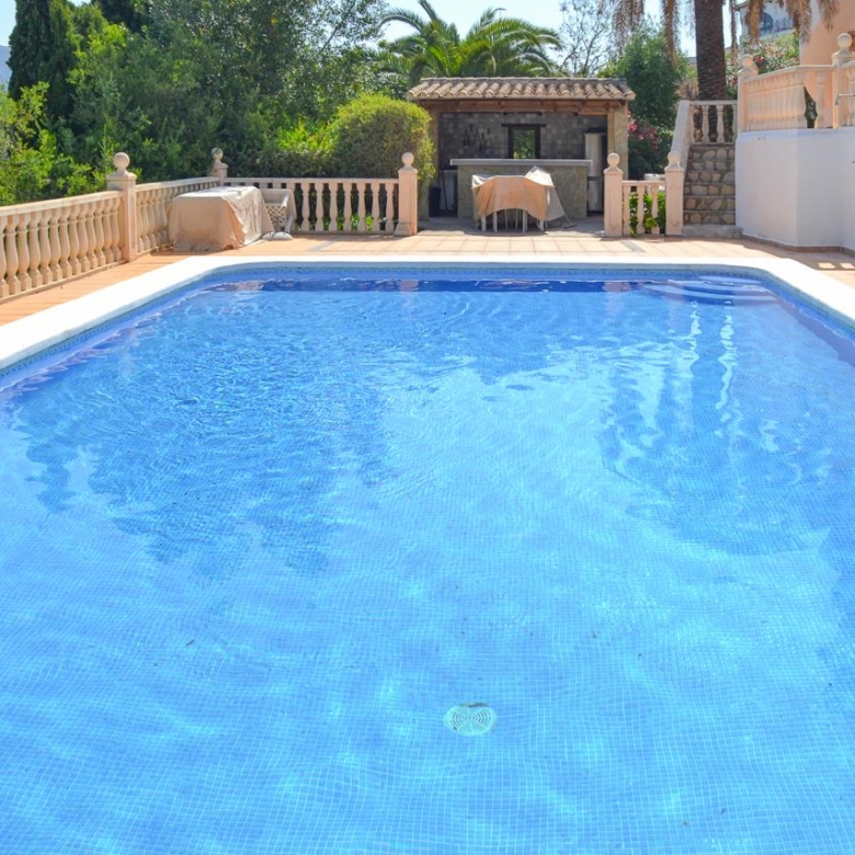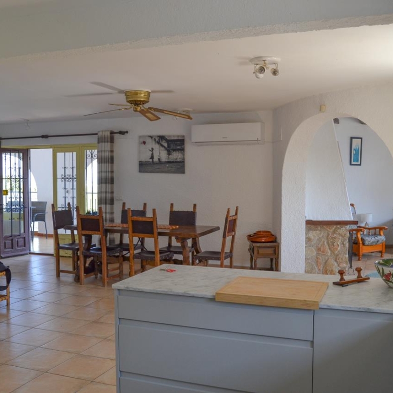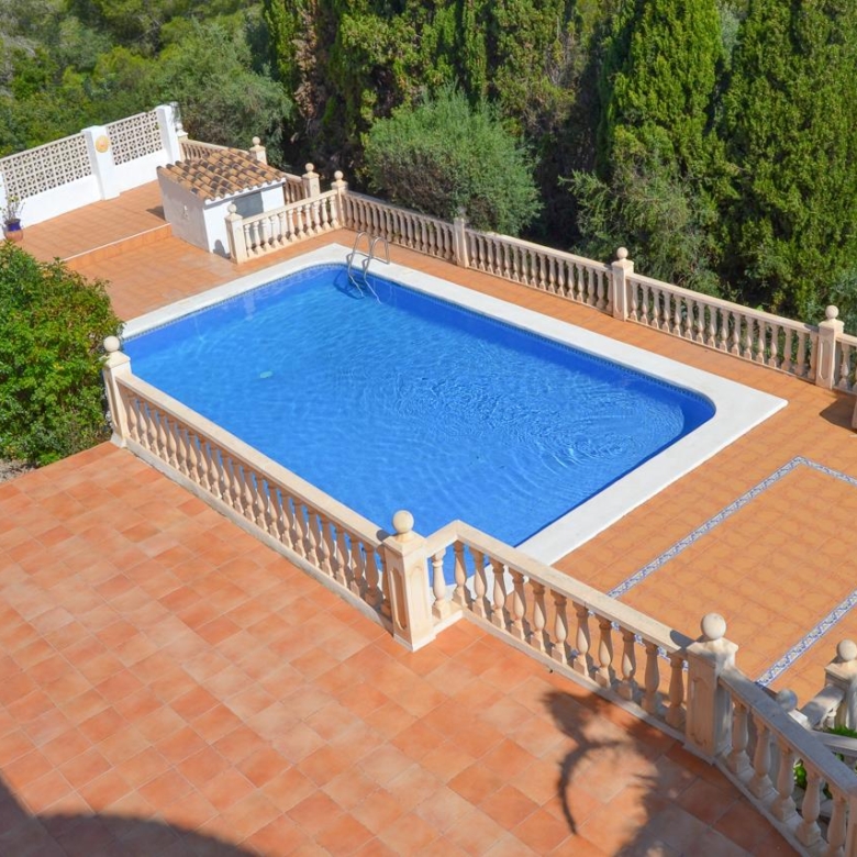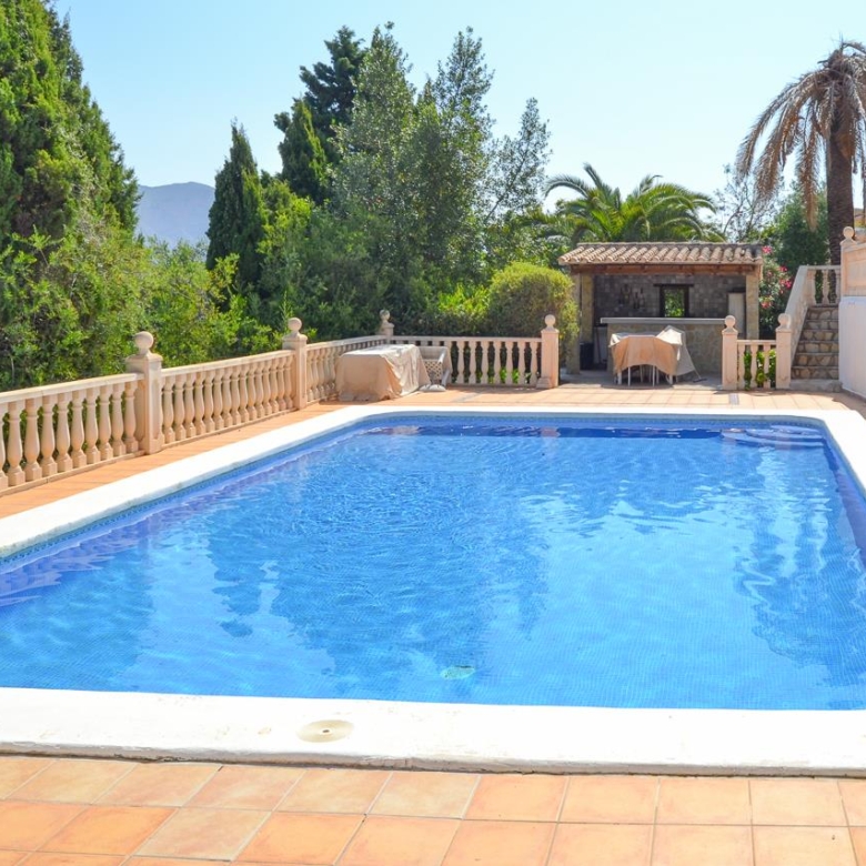 Splendid villa in Monte Pedreguer, with magnificent open views to the sea and valley. The property has a guest apartment, which could be rented on vacation, a great opportunity for investors. This beautiful villa is distributed over two floors. On the main floor, we find an entrance hall that leads to the fully equipped kitchen and open to the living / dining room. In said room we will see the fireplace and the great amplitude of this room and luminosity. From the spacious living room, we have direct access to the naya, where you can enjoy the magnificent views of the valley and the sea. A fantastic barbecue area to enjoy those summer nights. On the same floor we will see the three bedrooms, two bathrooms, both with shower. A laundry and storage room. If we continue to the ground floor, we will find the entrance hall, a large fully uncovered terrace, a spacious living/dining room with an open, fully equipped and functional kitchen. Three other bedrooms, one of them ensuite with a shower, as well as another family bathroom with a shower. On this floor, we will see another storage room, which could easily be converted into another bathroom. It should be noted that one of the bedrooms has access to a covered terrace, perfect for those sunsets. The property has a tourist license, therefore it is a good investment to be able to rent it. A large pool of about 12*6 meters, surrounded by large terraces. Nice barbecue area with summer kitchen and a covered bar. The villa enjoys a great tranquility and a lot of privacy. Located on a sloping plot.
