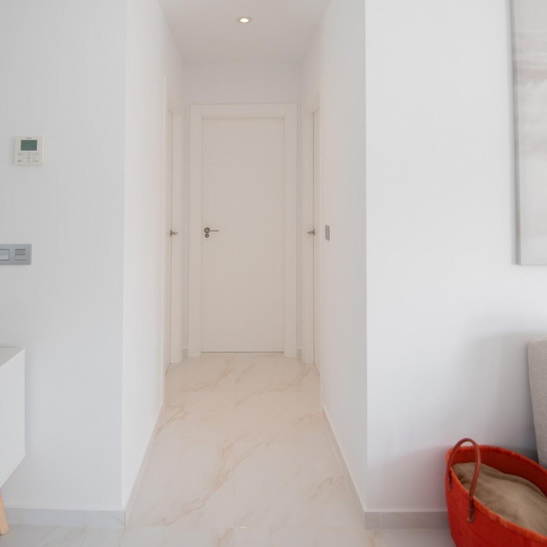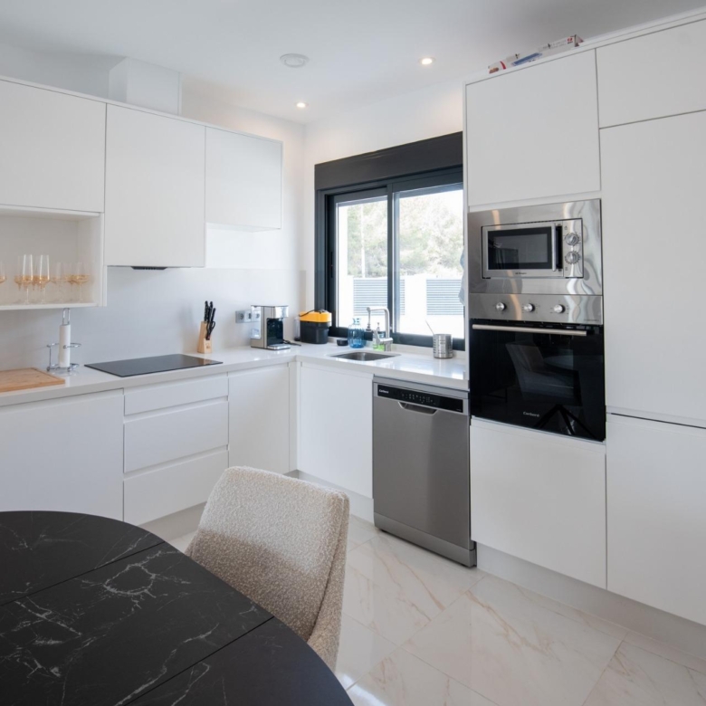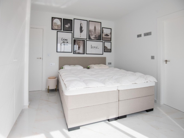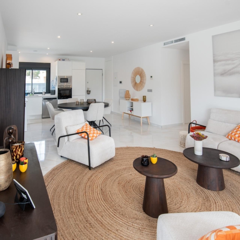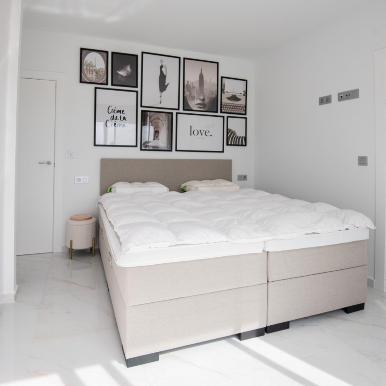 Small development of only 15 villas, 9 of which are built in one story with a distribution of 3 bedrooms and 2 bathrooms, open plan lounge-dining kitchen area with central island views to the pool, in independent plots from 300.00 m2. There is also a big solarium to enjoy the sun and nice views all year around.