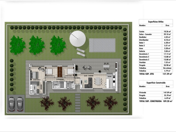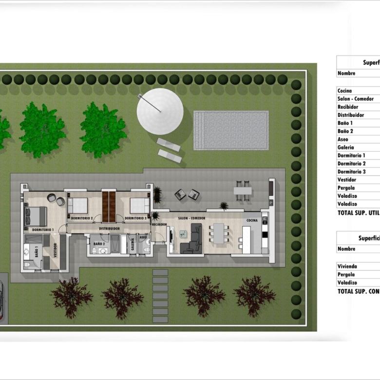 The villas will be built on rustic plots of 10.959 m2, of which about 2.000 m2 will be fenced, with all its water supplies, electricity, installation of a set of photovoltaic panels for self-consumption of electricity and waste water purification system by means of biological oxidation treatment plant.