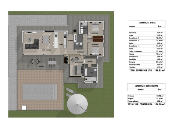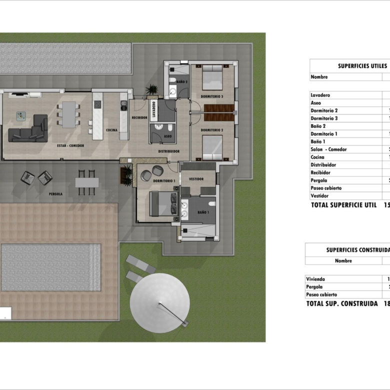 The villas will be built on rustic plots of 10.959 m2, of which about 2.000 m2 will be fenced, with all its water supplies, electricity, installation of a set of photovoltaic panels for self-consumption of electricity and waste water purification system by means of biological oxidation treatment plant.