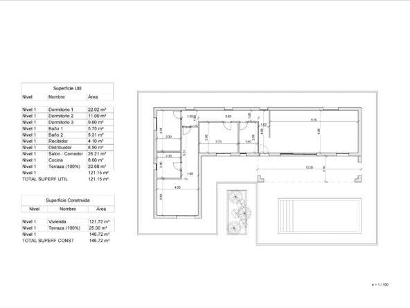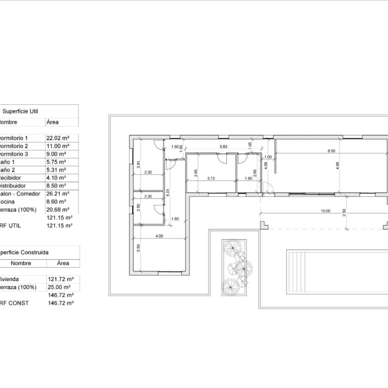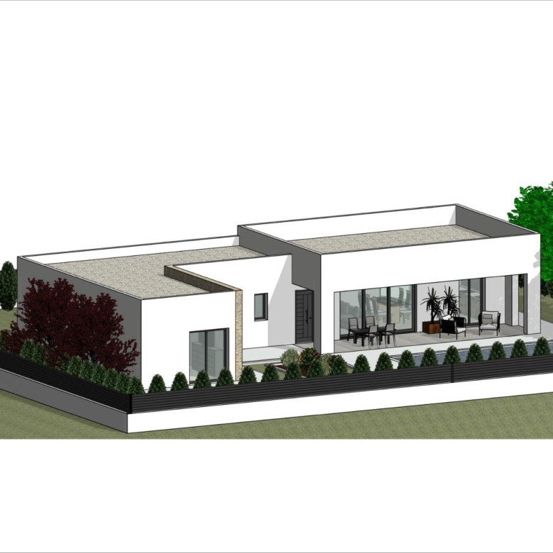 One level villa build on the rustic plot of 10 548 m2, ( of them fenced 2,500 m2) has 3 bedrooms and 2 bathrooms, open plan kitchen with the lounge area, fitted wardrobes, private pool and off road parking space.