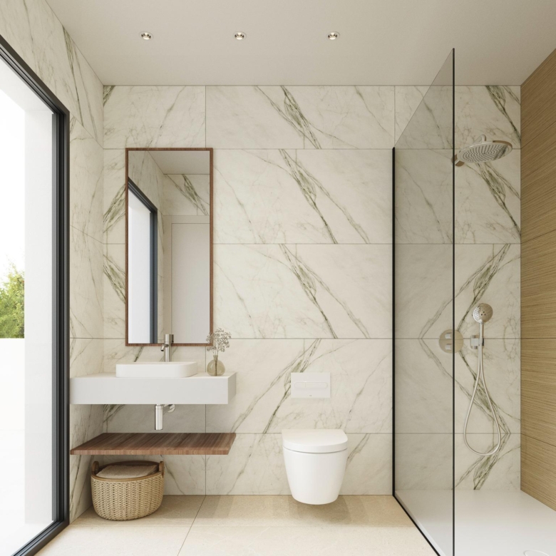2-3 modern bathrooms with underfloor heating