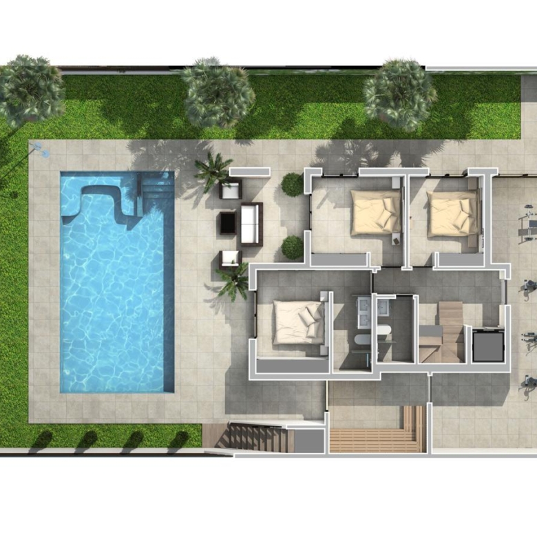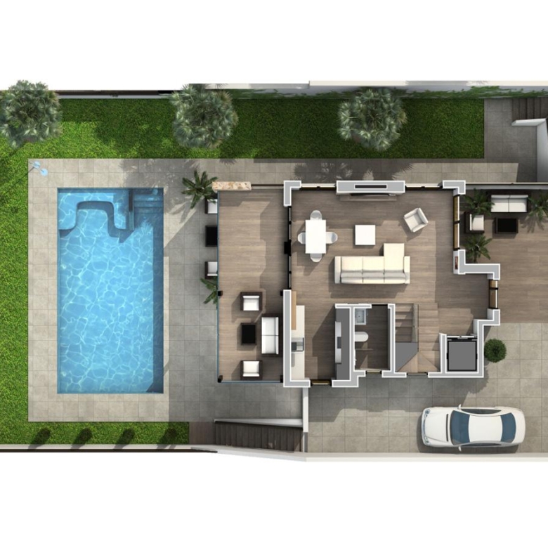 It has an elevator on all floors of the villa, terraces overlooking the golf course, sports area, sauna, and private pool. It is located in a location with medical services, Swedish school, public schools, playgrounds, 15 minutes from the beaches of Guardamar and 5 minutes from the old town of Rojales.
