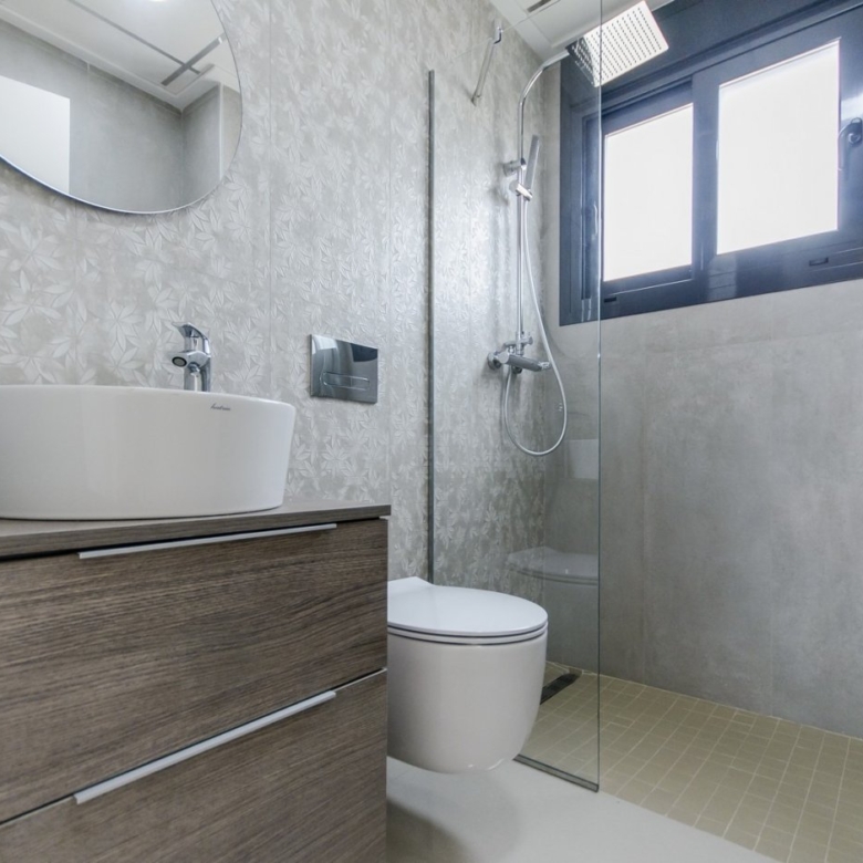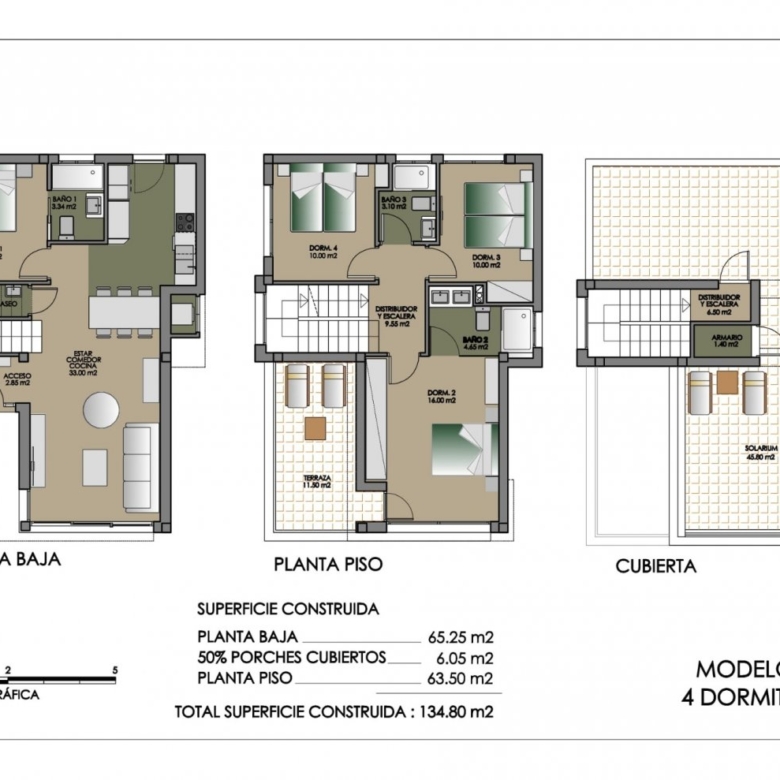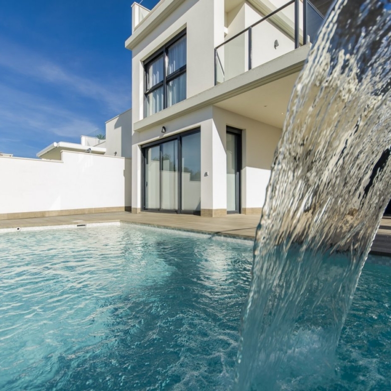 New Build villas with 4 bedrooms and 3 bathrooms, open plan kitchen with living room-dining room.