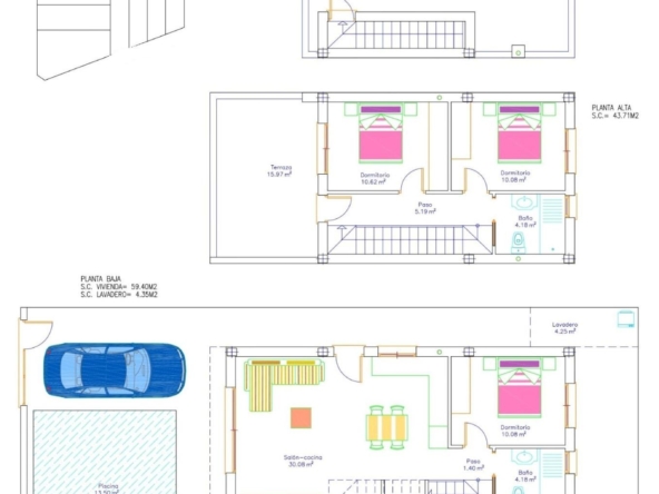 Each property has 3 bedrooms and 2 complete bathrooms, as well as a dressing room in the master bedroom.