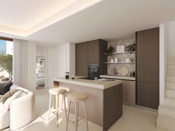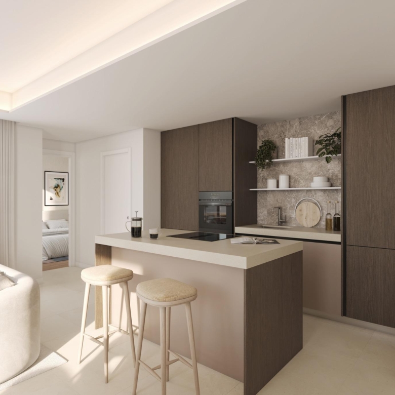 The kitchen also comes from Porcelanosa and features an 8cm thick XTone worktop and all appliances, including an induction hob with built-in extractor hood from Balay are included as standard.