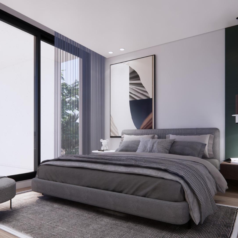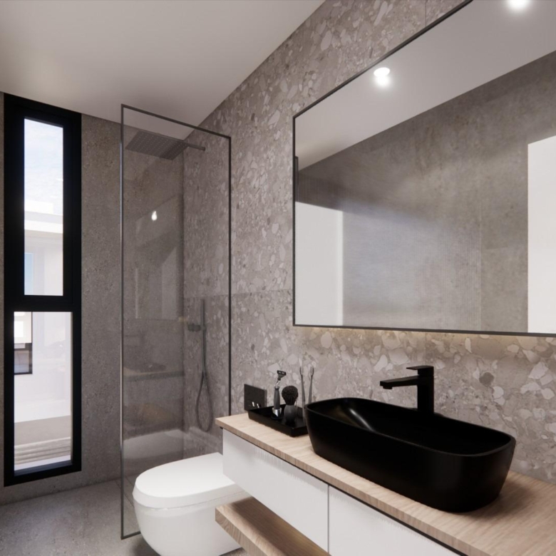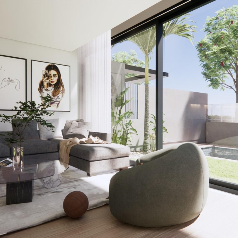 These luxury villas offer a harmonious blend of modern elegance and refinement and finished to the highest standards. The main living area flows through to the garden and pool area creating a
