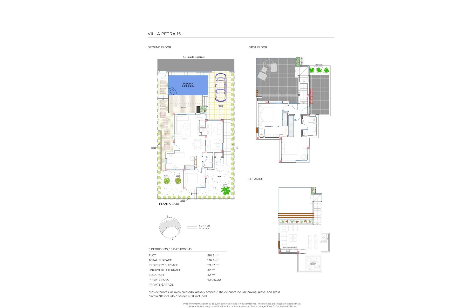 Los exteriores de estas viviendas independientes están diseñados para maximizar el disfrute del clima mediterráneo. Cada propiedad cuenta con una piscina privada, ideal para refrescarse durante los cálidos días de verano. Además, el solárium ofrece un espacio perfecto para tomar el sol o disfrutar de las vistas panorámicas. La presencia de un jacuzzi añade un toque de lujo, permitiendo momentos de relajación al aire libre. Las terrazas amplias son ideales para cenas al aire libre o simplemente para disfrutar de la tranquilidad del entorno.