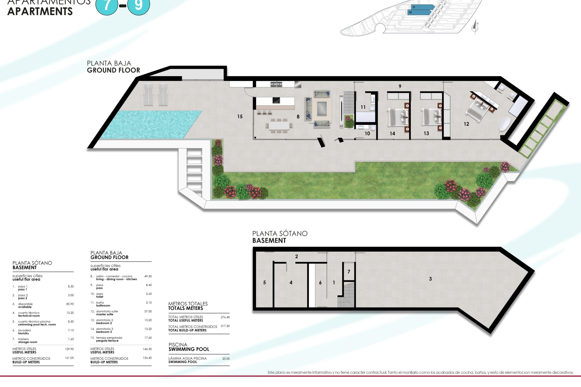 Los exteriores de estas propiedades en Pueblo Mascarat están diseñados para ofrecer el máximo disfrute del entorno natural y las vistas al mar. Cada propiedad cuenta con una terraza privada, ideal para relajarse y disfrutar del paisaje. Además, algunas propiedades incluyen un jardín privado, perfecto para quienes buscan un espacio verde personal. La presencia de una piscina privada en ciertas tipologías permite disfrutar de un refrescante baño en la privacidad de su hogar. Las pérgolas proporcionan sombra y estilo a las áreas exteriores, creando espacios acogedores para el descanso y el entretenimiento al aire libre. La cercanía al mar, a solo 400 metros, hace que el acceso a la playa sea cómodo y rápido, permitiendo disfrutar de la costa en cualquier momento.