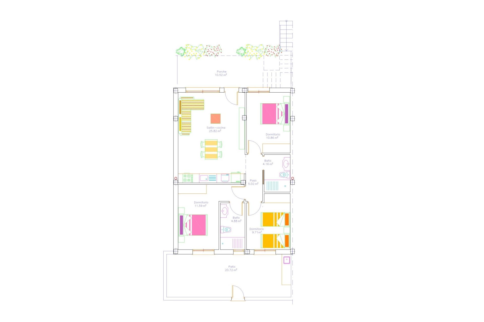 El interior de los bungalows está diseñado con un enfoque en la calidad y la comodidad. Los suelos de gres porcelánico aportan un toque de elegancia y son fáciles de mantener, ideales para el estilo de vida moderno. La cocina está equipada con electrodomésticos, lo que facilita la vida diaria desde el primer día. Los armarios empotrados en los dormitorios ofrecen un amplio espacio de almacenamiento, manteniendo el orden y la organización. Además, la preinstalación de aire acondicionado asegura que el hogar se mantenga fresco durante los meses más cálidos, proporcionando un ambiente confortable en todo momento.