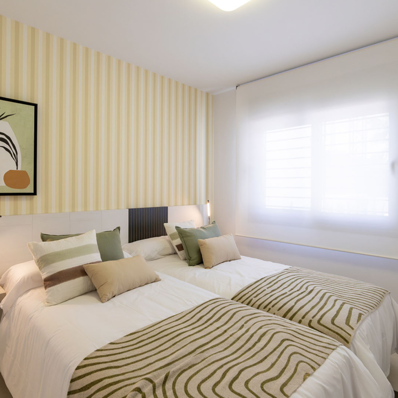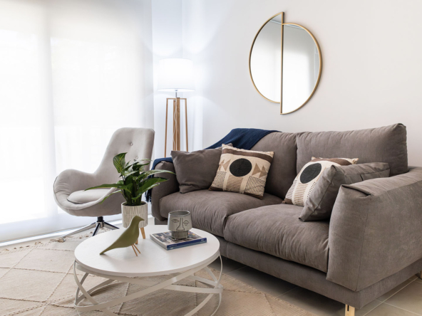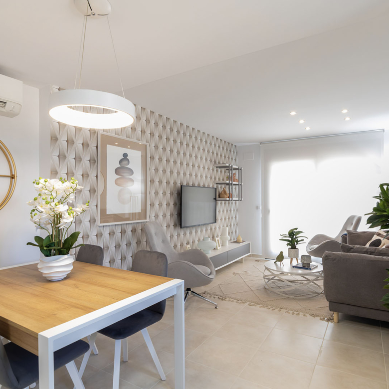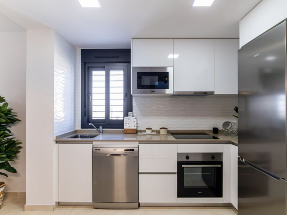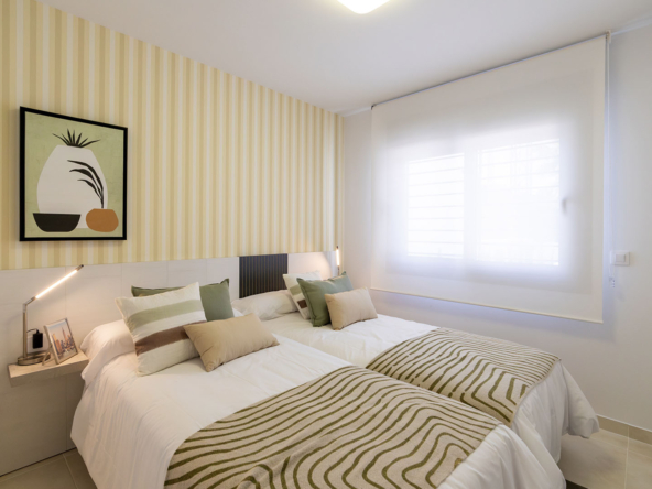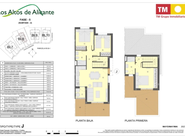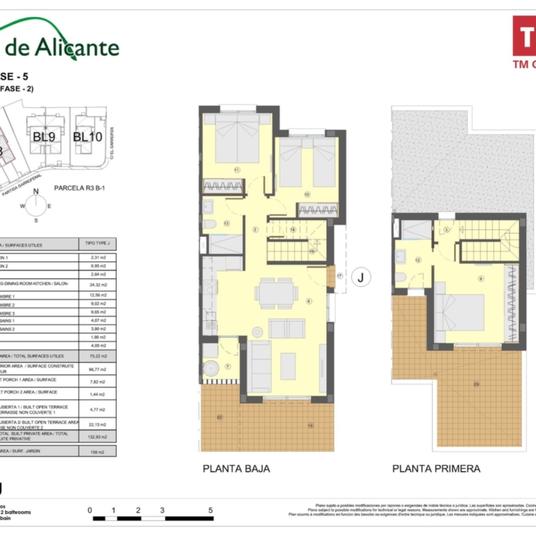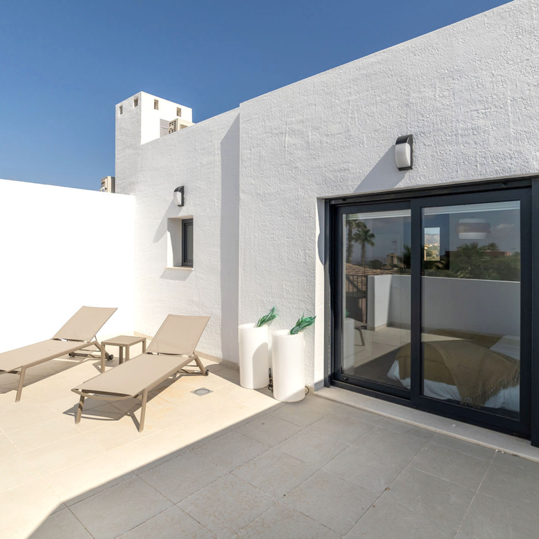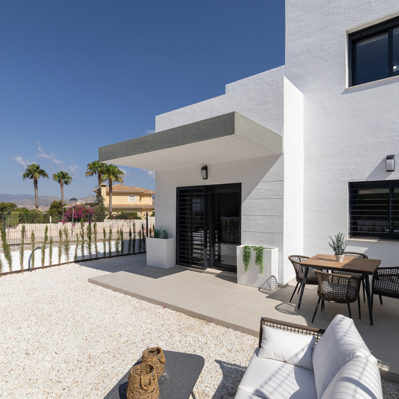 Esta villa se distingue por su arquitectura moderna y elegante, que ofrece una luminosidad excepcional en todas las habitaciones gracias a grandes ventanas de aluminio de alta calidad con doble acristalamiento. Distribuida en dos plantas, cuenta en total con 3 dormitorios, dos baños, un amplio salón con cocina completamente equipada, así como una terraza en la planta baja y en el último piso. Todas las habitaciones están equipadas con preinstalación para aire acondicionado. Además, tienes la posibilidad de adquirir la casa completamente amueblada por un suplemento de 15,100 € sobre el precio total de la vivienda.