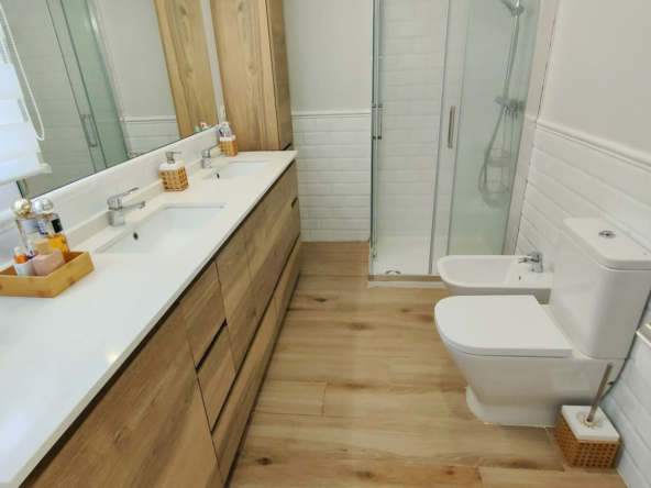 El inmueble ha sido completamente renovado en 2021, con suelos cerámicos que imitan la madera, carpintería exterior de aluminio y ventanas climalit, una terraza acristalada, armarios empotrados en los dormitorios, puerta blindada.