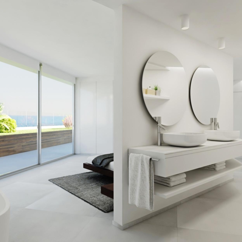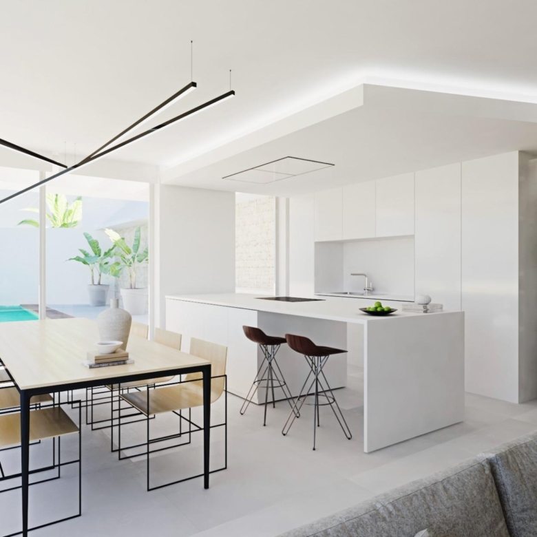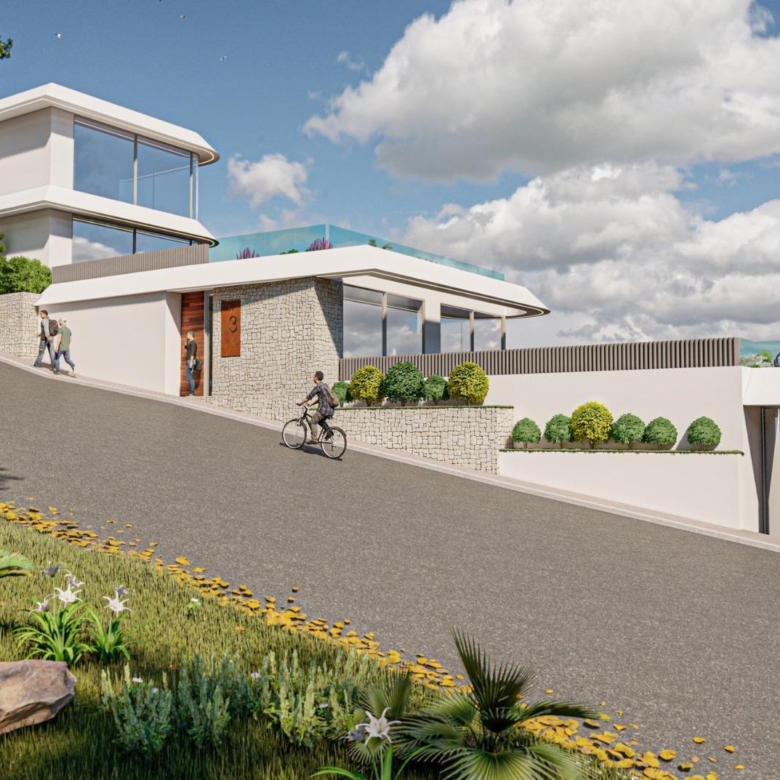Las 4 lujosas villas cuentan con cuatro dormitorios, tres baños distribuidos en 2 plantas, con interiores abiertos y luminosos que fluyen sin esfuerzo hacia amplios espacios exteriores. Cada villa cuenta con ascensor y piscina privada, su propio garaje y acceso a las instalaciones compartidas estilo resort. Los acabados de alta calidad y la atención arquitectónica al detalle garantizan que cada vivienda ofrezca el máximo confort, elegancia y privacidad.