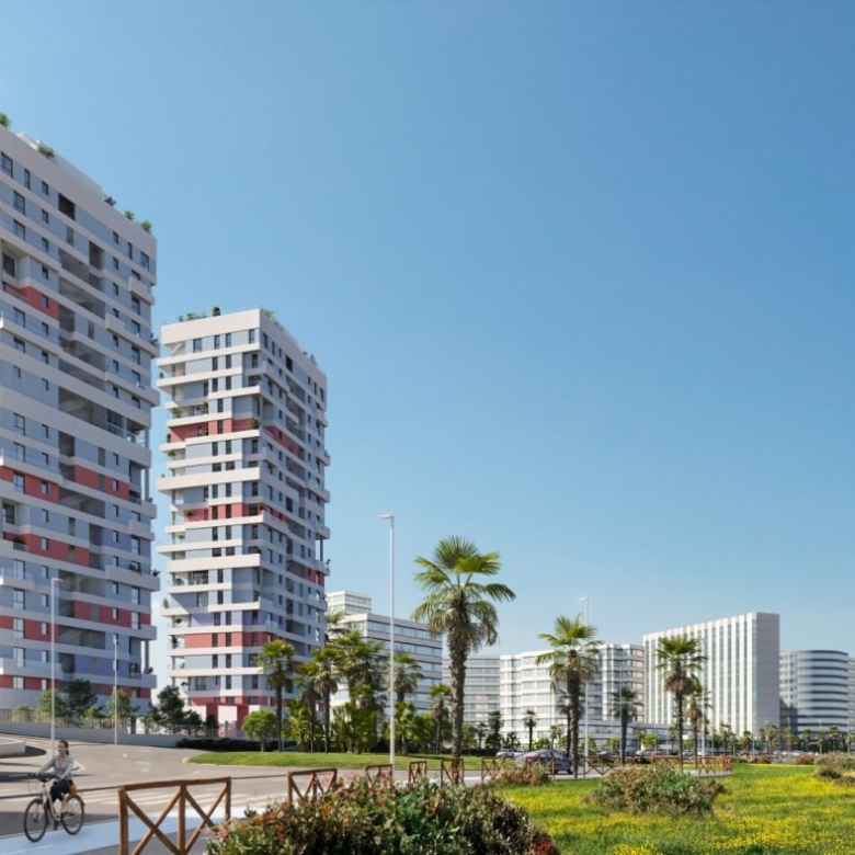 Amplias zonas comunes con jardines, piscina, pádel, zona infantil. En la planta 11 de la torre 1: piscina infinita, sauna, gimnasio y zona chill out con vistas al mar.