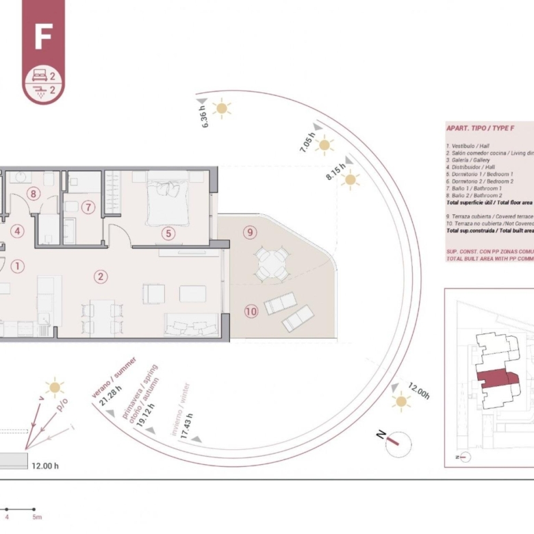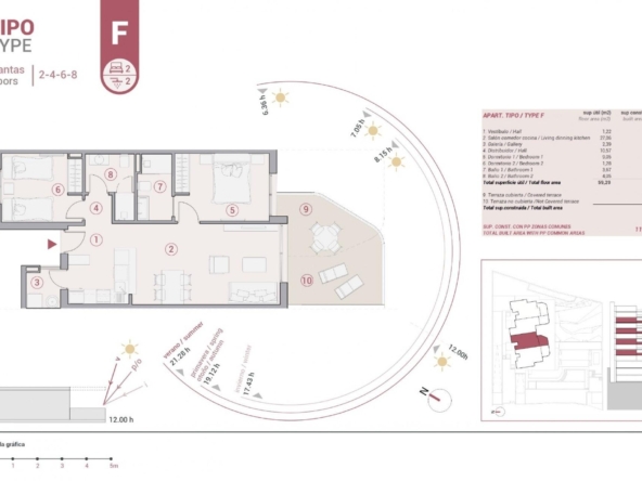 Apartamentos modernos de 2 y 3 dormitorios, 2 baños, cocina americana con salón, armarios empotrados y terrazas.