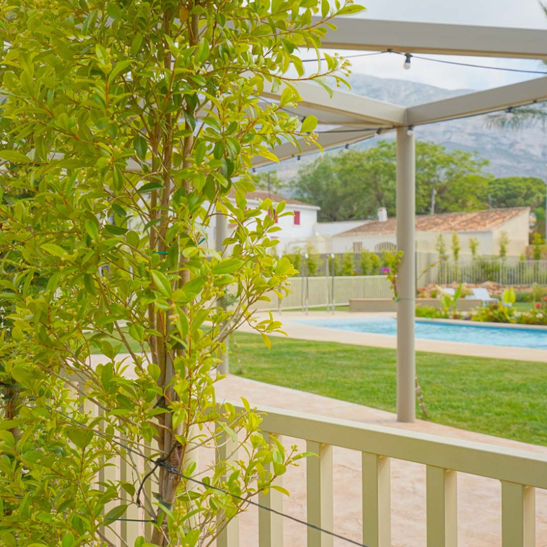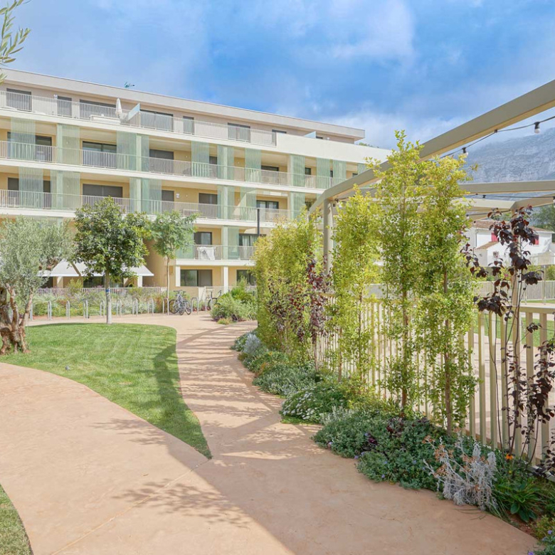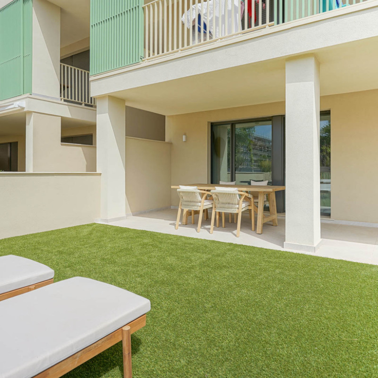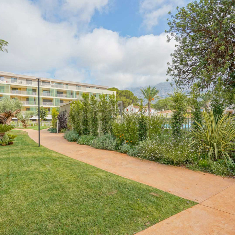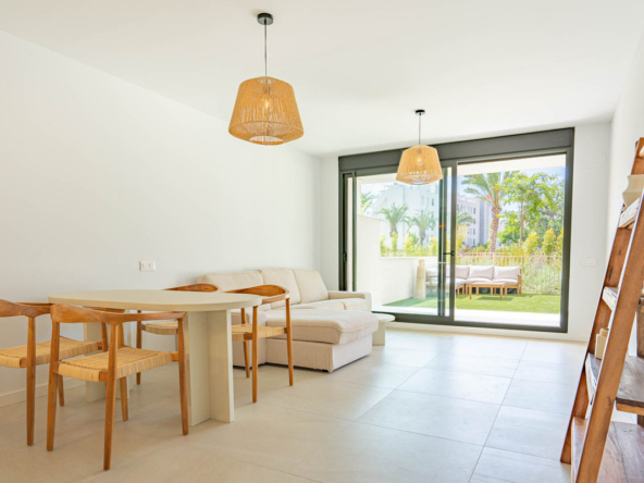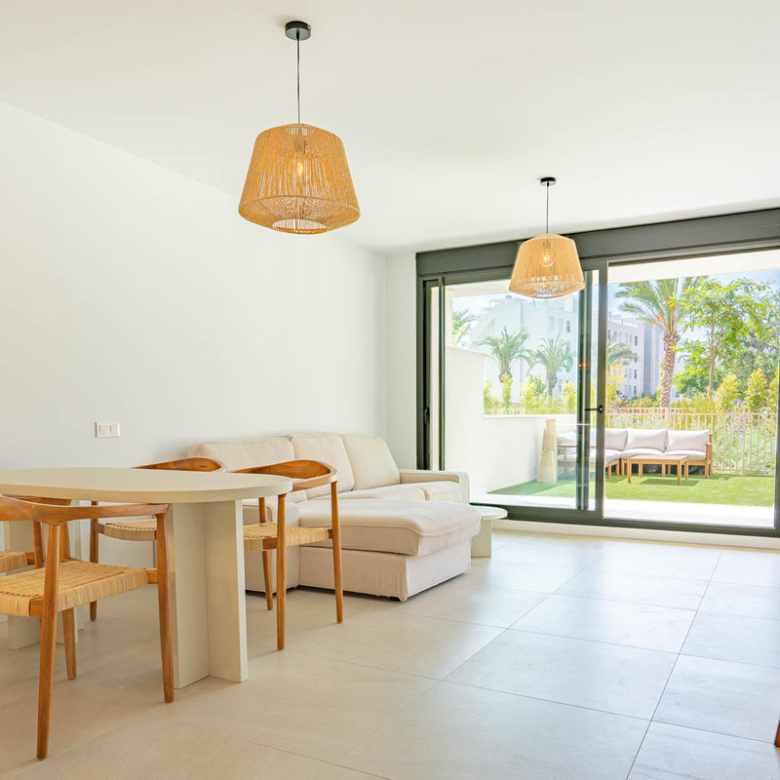 Terminado a principios de 2024, este fantástico apartamento se encuentra en un hermoso complejo residencial a solo 300 m de la playa de Denia. El apartamento está en la planta baja y tiene preciosas vistas sobre el exuberante jardín y la piscina. El apartamento consta de un salón-comedor con una moderna cocina americana con isla. La cocina está equipada con placa de inducción, horno eléctrico, microondas, nevera-congelador y lavavajillas. También hay un dormitorio principal con baño en suite y un segundo dormitorio doble con baño independiente. Ambos dormitorios tienen armarios empotrados y el dormitorio principal tiene acceso directo a la terraza a través de grandes ventanas correderas. Ambos cuartos de baño tienen una ducha y están acabados con materiales de alta calidad. La propiedad también cuenta con armarios empotrados adicionales en el pasillo que proporciona comodidad adicional. Las grandes ventanas correderas del salón dan a una terraza cubierta muy espaciosa con jardín privado. La terraza dispone de iluminación, enchufes y grifo de agua y está pavimentada en porcelana antideslizante. Además, hay acceso directo al jardín y la piscina comunitarios. Para garantizar el máximo nivel de confort y un importante ahorro energético, el piso dispone de calefacción por suelo radiante alimentado por una bomba de calor y las ventanas son de doble acristalamiento. El apartamento también dispone de aire acondicionado frío/calor, persianas eléctricas, un sistema de ventilación automático y muy buen aislamiento acústico. Además, se vende amueblado por lo que está inmediatamente listo para su uso. Los muebles son como nuevos y de la marca de calidad Sklum. El apartamento también incluye una plaza de aparcamiento en el garaje subterráneo y un trastero. El complejo está equipado con todas las comodidades para relajarse plenamente sin salir del complejo. Hay un jardín mediterráneo muy bonito, cuidado hasta el último detalle, una gran piscina con jacuzzi y zona para tomar el sol donde se puede disfrutar de vistas al Montgó, un parque infantil, un gimnasio y un cobertizo para bicicletas. Además, el piso está a poca distancia de la playa y del puerto de Denia, donde se pueden encontrar varios bares y restaurantes acogedores. Denia es una encantadora ciudad portuaria situada a los pies del majestuoso Montgó y tiene una gran playa de arena, así como varias calas idílicas y hermosos lugares para bucear. También es el lugar ideal para los amantes del senderismo y el ciclismo. Este piso, situado en un bonito complejo residencial con todos los servicios a la vuelta de la esquina, es perfecto para aquellos que buscan una casa de vacaciones ya hecha, un nuevo hogar o una inversión. No pierda esta oportunidad y solicite ya su visita.