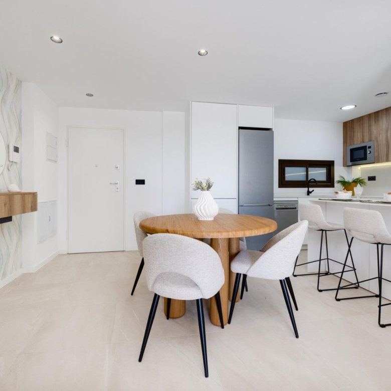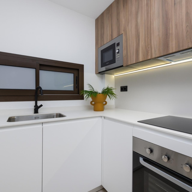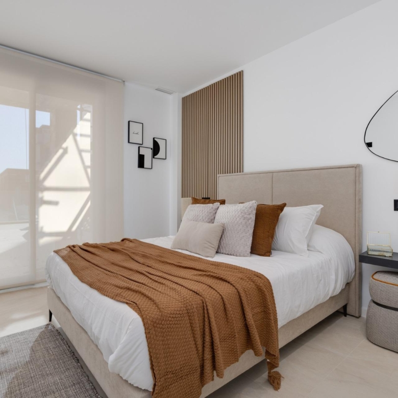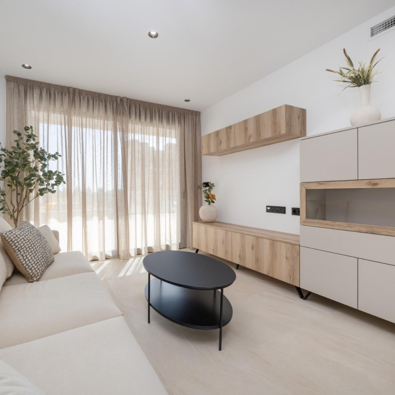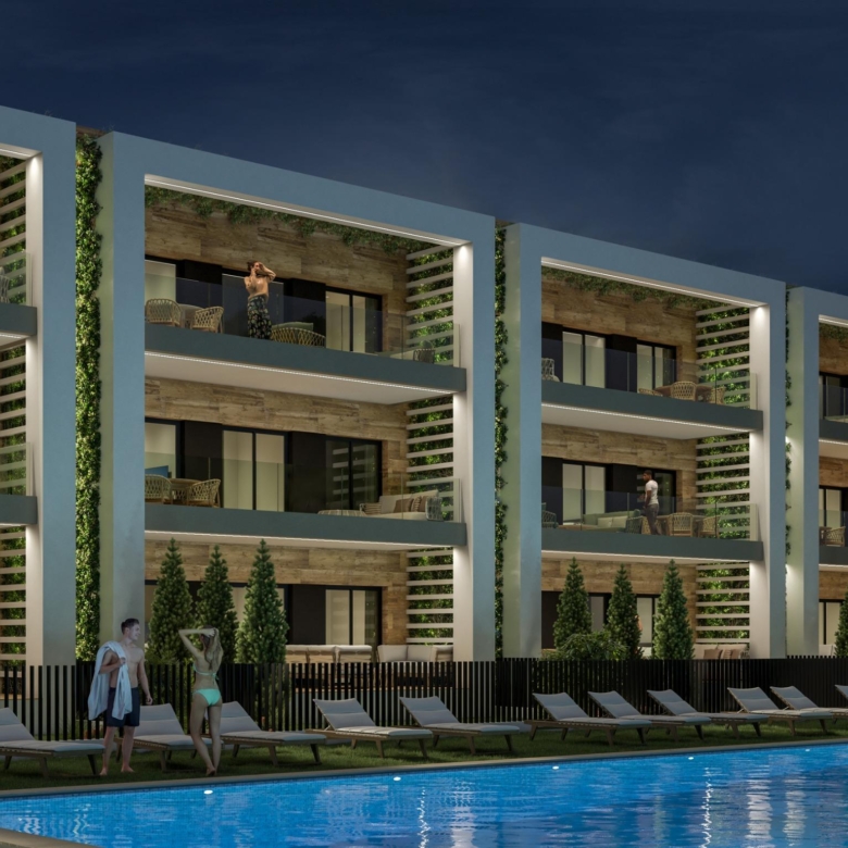 Apartamentos modernos en 3 plantas (planta baja más 2), planta baja con bonitos jardines, y algunos de ellos con piscina privada y segunda planta con bonitas terrazas y solariums privados.