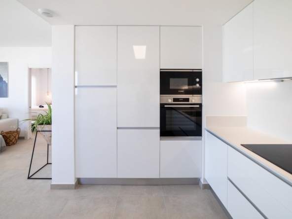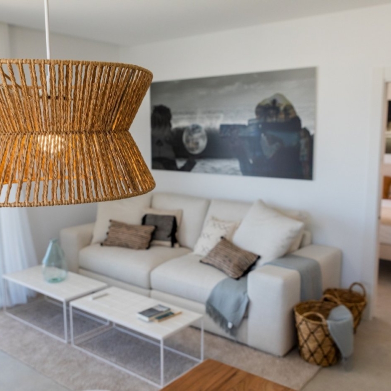 Los apartamentos de 2 y 3 dormitorios y 2 baños, tienen una cuidada distribución y gozan de bonitas vistas al mar, la playa y a la piscina y jardines privados de la urbanización.