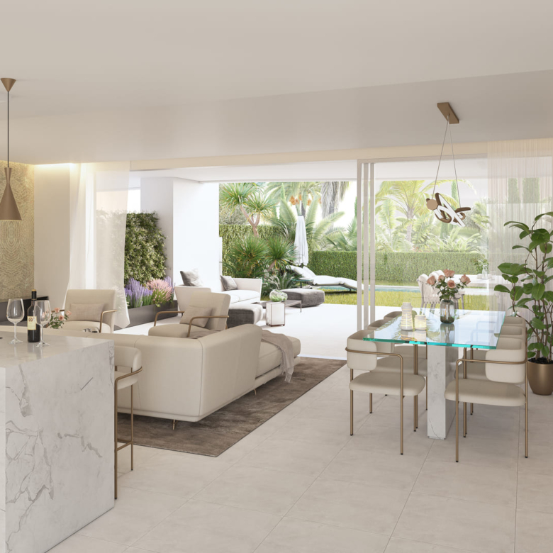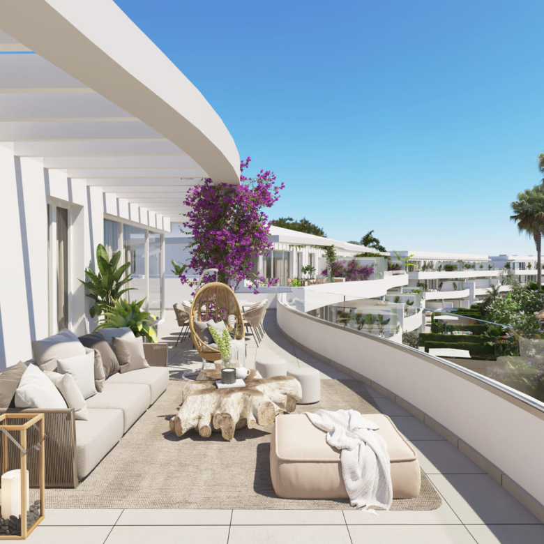 Los exteriores de estas propiedades están diseñados para ofrecer el máximo confort y disfrute del entorno natural. Cada vivienda cuenta con una terraza privada, perfecta para relajarse y disfrutar de las vistas al mar. Además, algunas tipologías incluyen jardín privado, proporcionando un espacio adicional para el ocio al aire libre. El acceso a un garaje privado asegura comodidad y seguridad para los residentes. La ubicación en primera línea de mar permite disfrutar de la brisa marina y de un ambiente tranquilo y exclusivo.