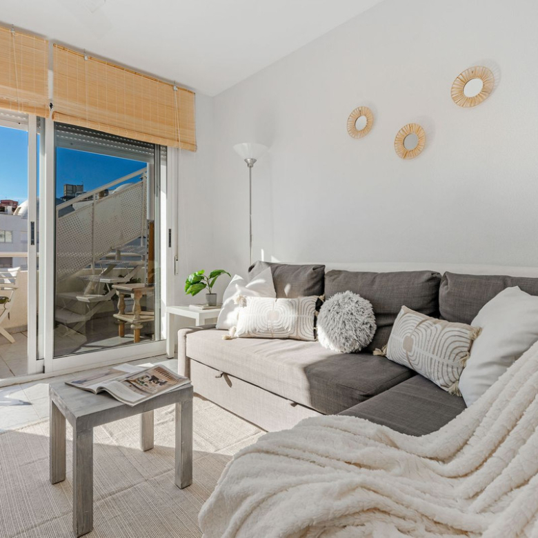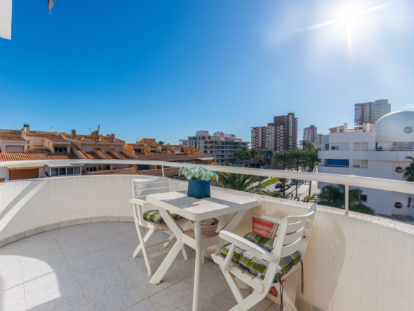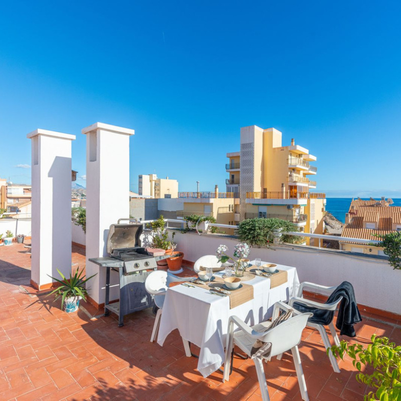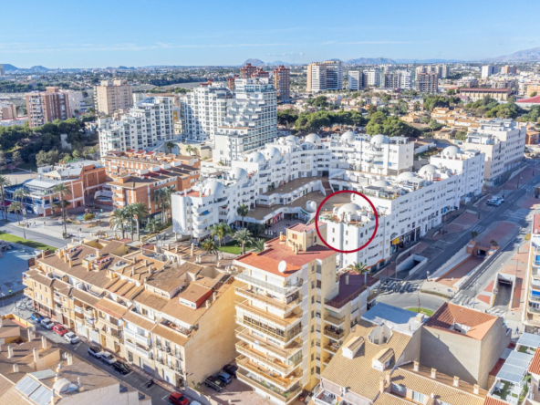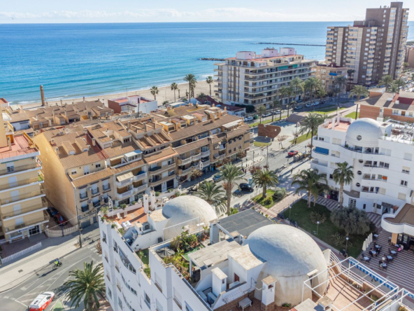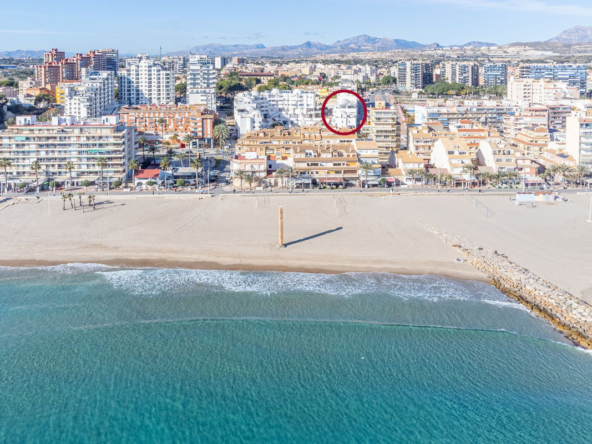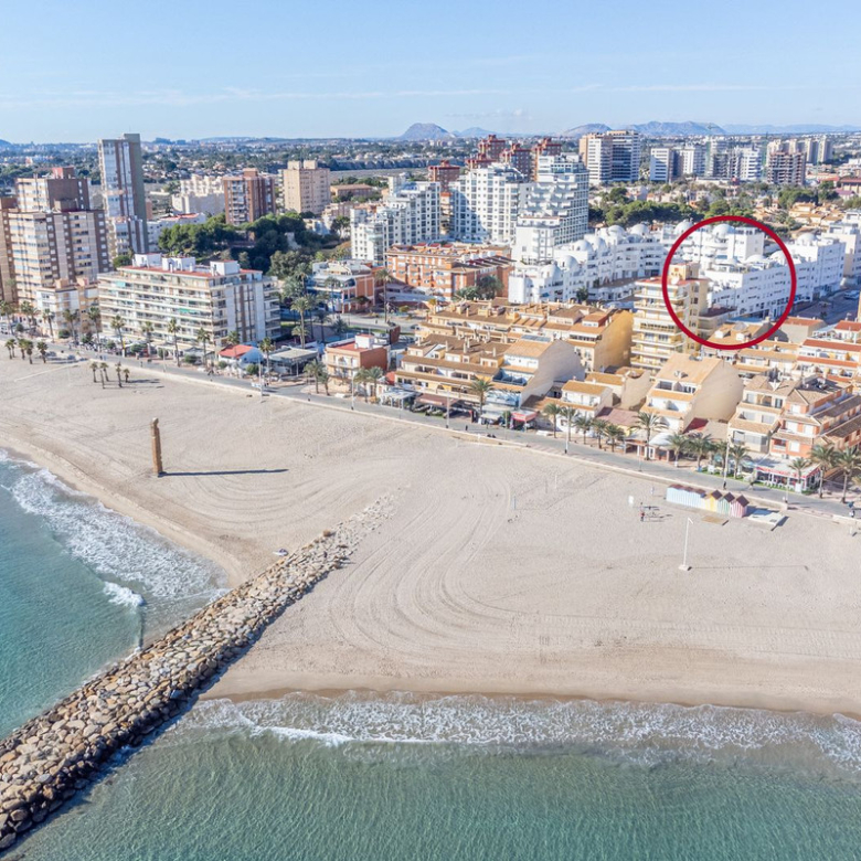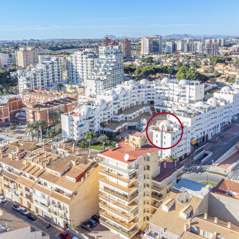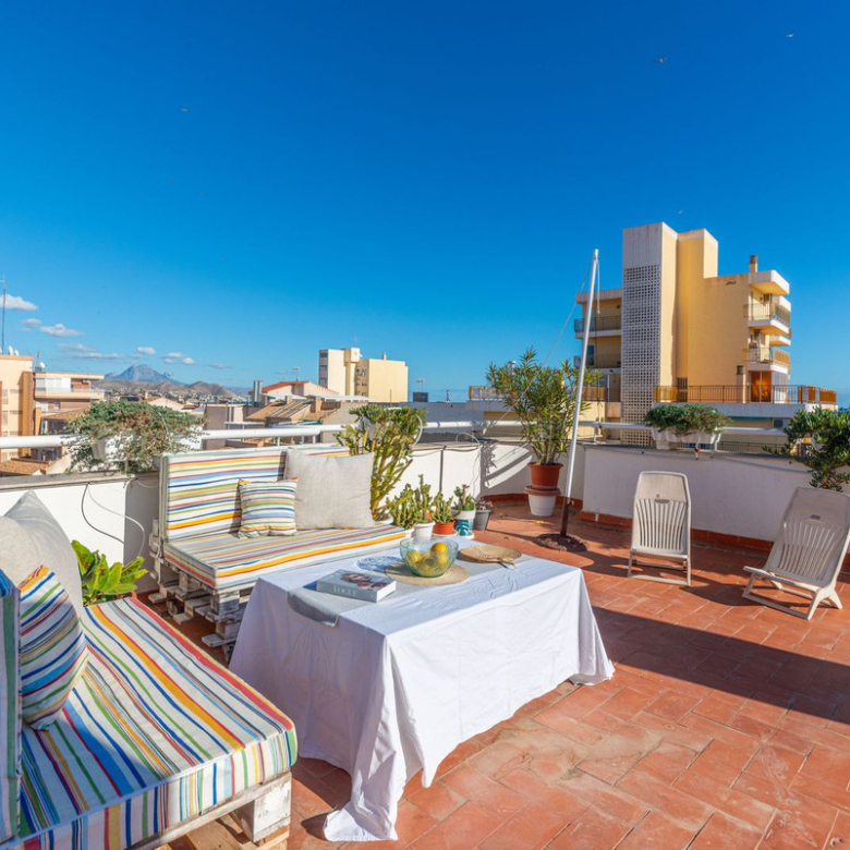 Situado en la calle principal de tiendas, paralela al paseo marítimo de El Campello, este ático cuenta con una terraza privada de esquina en la azotea, una ubicación privilegiada y vistas al mar. El Campello es una encantadora localidad costera que ha mantenido el carácter tradicional de un pueblo pesquero. Se encuentra convenientemente ubicado a solo 20 minutos en coche de la ciudad de Alicante con su vibrante oferta cultural, 30 minutos del aeropuerto de Alicante, 15 minutos del campo de golf más cercano y 20 minutos del pintoresco pueblo costero de Villajoyosa.