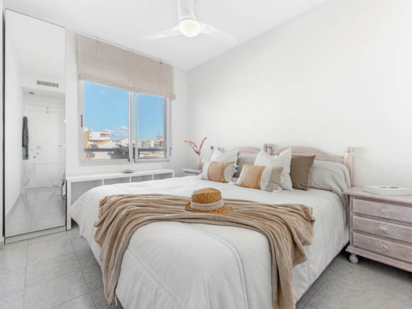 Este exclusivo ático de esquina orientado al sur, con tres dormitorios, ocupa la planta superior de un edificio de cuatro alturas y el complejo dispone de piscina comunitaria. Con dos terrazas que ofrecen vistas despejadas y amplios espacios privados al aire libre, una ubicación urbana privilegiada cerca de la playa, excelentes conexiones de transporte, garaje privado, trastero y todos los servicios a mano, se posiciona como uno de los áticos más completos y atractivos disponibles en El Campello.