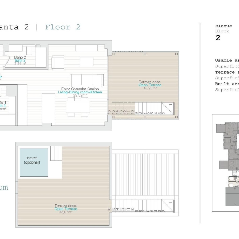 La característica principal de las viviendas serán sus amplias terrazas. De proporciones regulares, son los espacios ideales para la vida al aire libre. La integración del salón con estas amplias terrazas unirá su vivienda como un volumen habitable donde el interior se funde con el exterior.
