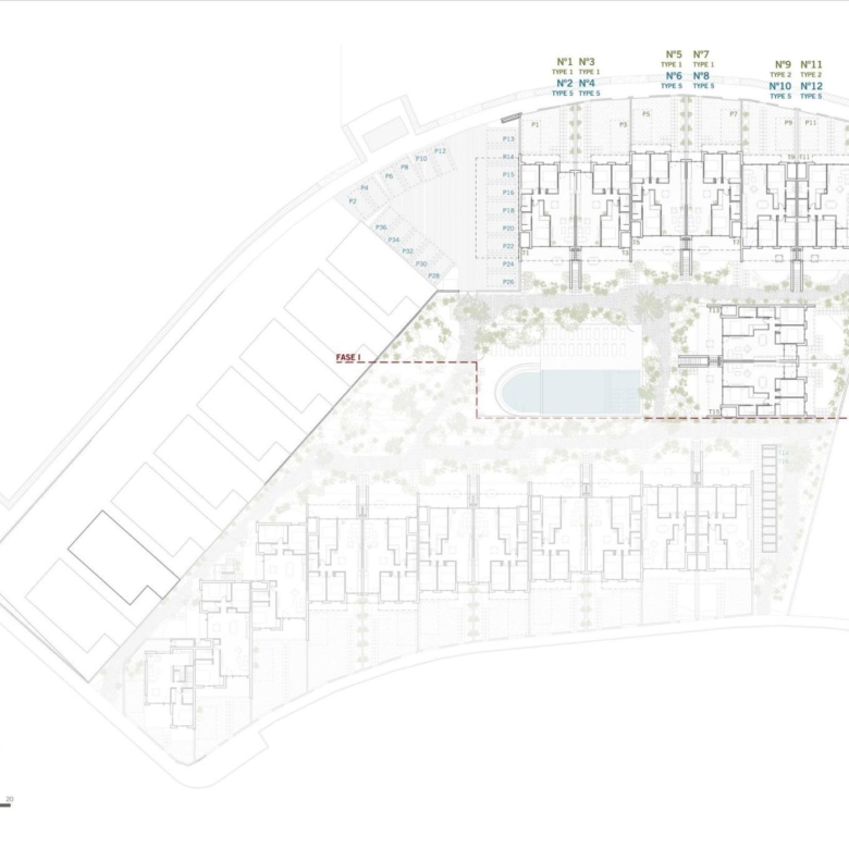 Este hermoso complejo consta de 37 amplias viviendas que rodean una impresionante piscina y jardines comunitarios.