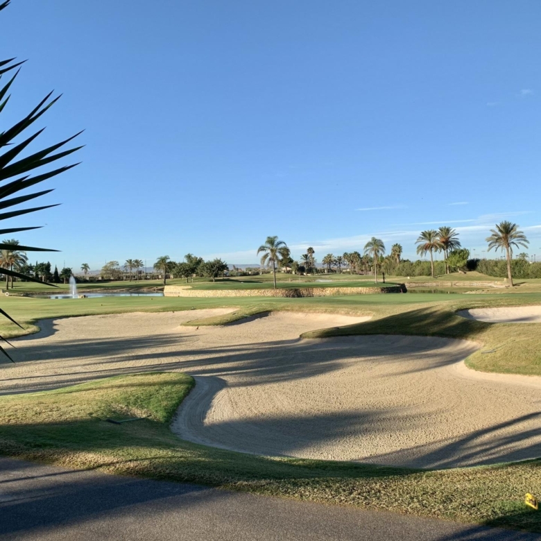 Un precioso campo de 18 hoyos diseñado por Dave Thomas con lagos, bunkers estratégicamente situados, greens ondulados y exuberante vegetación mediterránea. Un complejo privado con seguridad 24 horas, su propia parada de taxis, una impresionante casa club con restaurante a la carta, gimnasio con vistas al lago y zona deportiva. Y todo ello a un paseo o en bicicleta de las playas y tranquilas aguas de la laguna interior del Mar Menor.