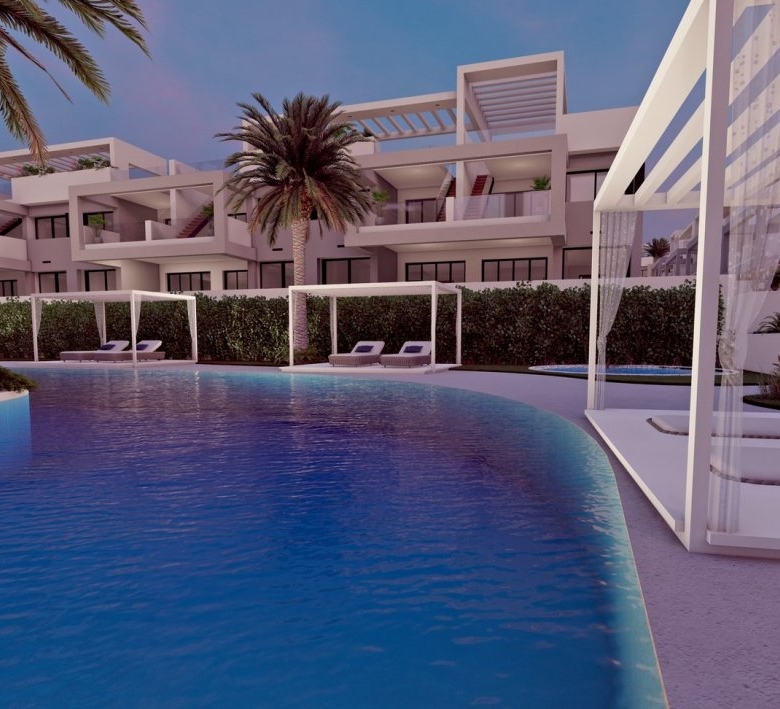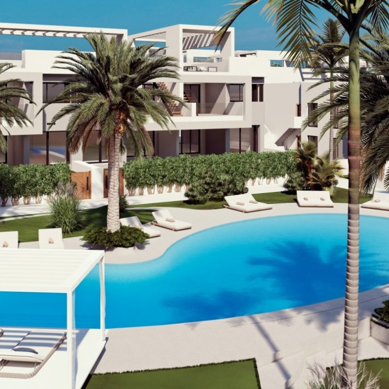 Puedes elegir entre bungalows de planta baja con sus 2 grandes terrazas privadas para disfrutar del clima de la Costa Blanca.