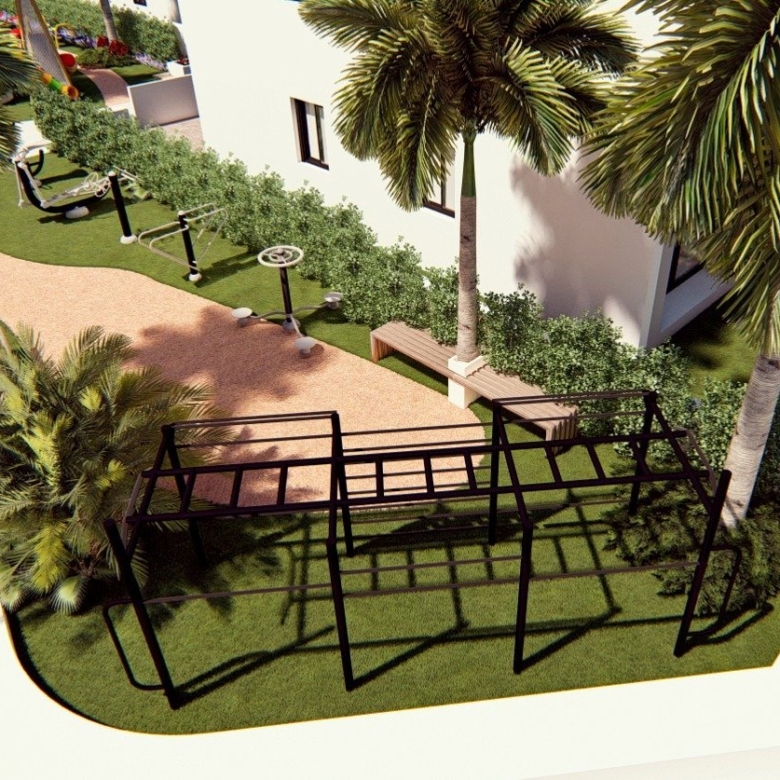 El complejo ofrece idílicas zonas comunes ajardinadas con 3 zonas de piscina, zonas de jacuzzi, zona de fitness, pista de pádel, mini golf, zona infantil, punto de carga para vehículos eléctricos… ¡y mucho más! Sus instalaciones Premium y sus zonas verdes le permitirán disfrutar con su familia y amigos de los 320 días de sol que ofrece la Costa Blanca.