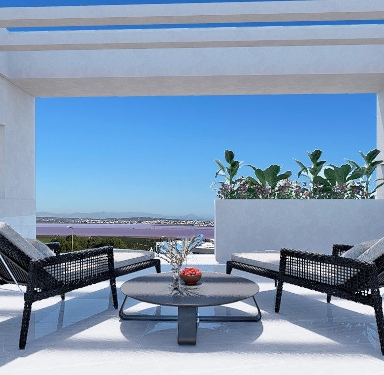 El residencial consta de 136 apartamentos bungalow de lujo construidos con materiales de primera calidad. Cada uno de ellos tiene unas vistas mágicas a la Laguna Rosa de Torrevieja y al Mar Mediterráneo.
