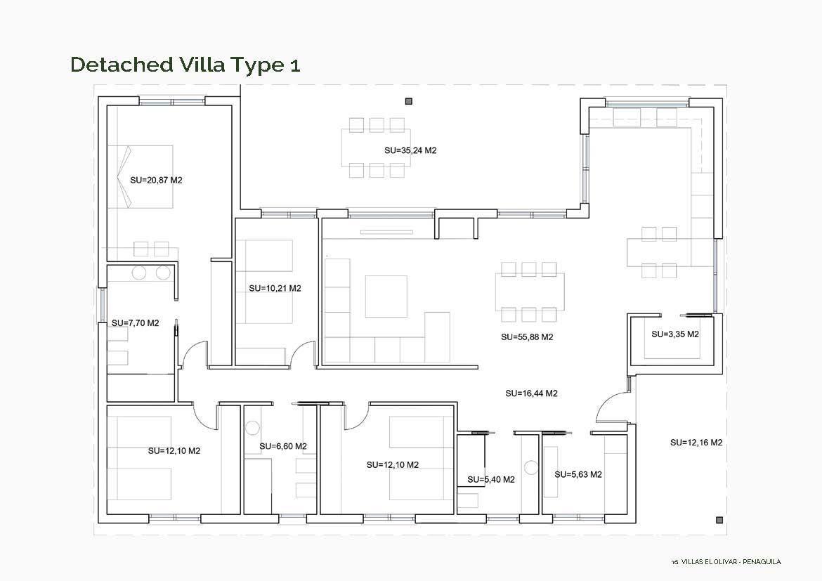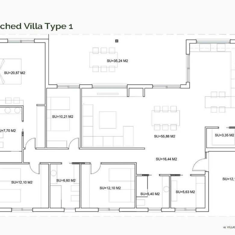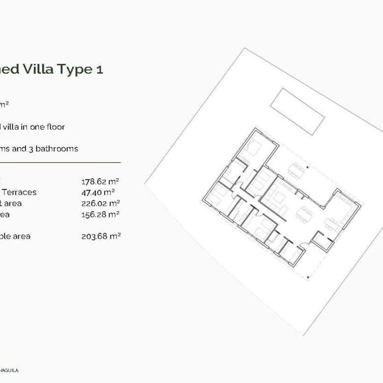 Cada villa se encuentra en una parcela privada de 800 m² y está distribuida en una sola planta, lo que ofrece el máximo confort y accesibilidad. Elija entre 5 distribuciones diferentes con 3 o 4 dormitorios, 2 o 3 baños y superficies construidas que van desde los 130 hasta los 178 m². Todas las viviendas cuentan con amplias terrazas cubiertas, ideales para disfrutar del aire libre durante todo el año.