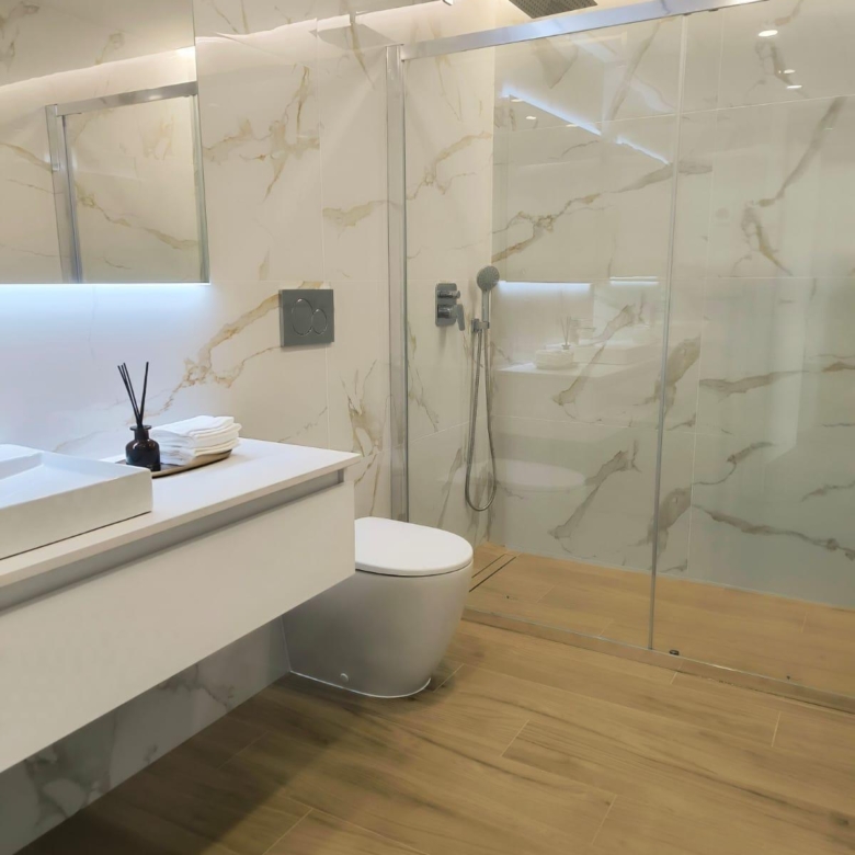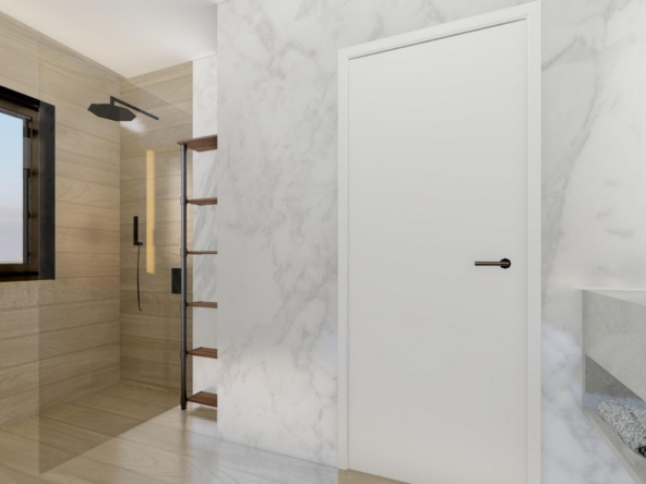 Las propiedades modernas consisten en 2 dormitorios, 2 cuartos de baño, cocina abierta del plan, la sala de estar con visiónes abiertas a la terraza, semi/sótano, solarium, jardín privado con el estacionamiento.