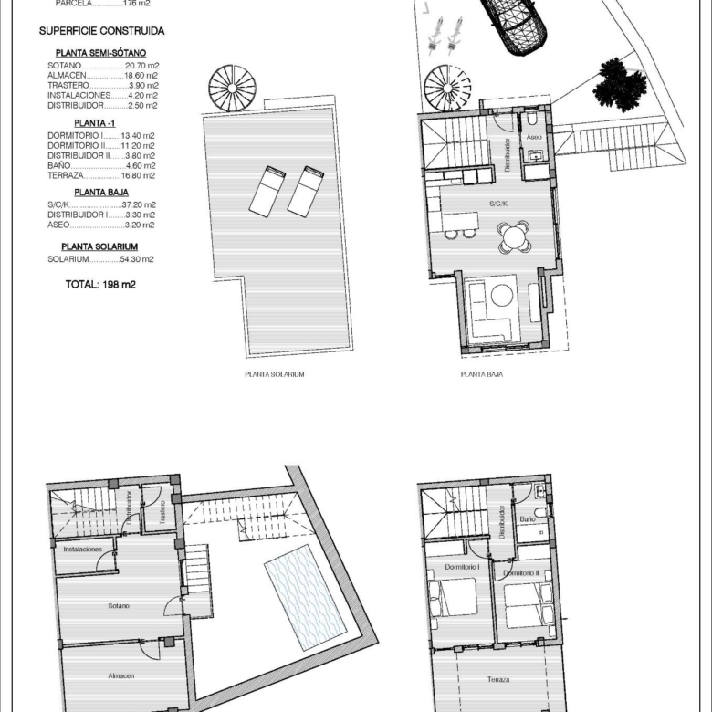 Estas viviendas disponen de planta de día, planta de noche, y planta semisótano, muy versátiles que se adaptarán completamente a sus necesidades; así como solarium y terrazas cubiertas y descubiertas, con vistas a toda la comarca de la Vega Baja del Río Segura.
