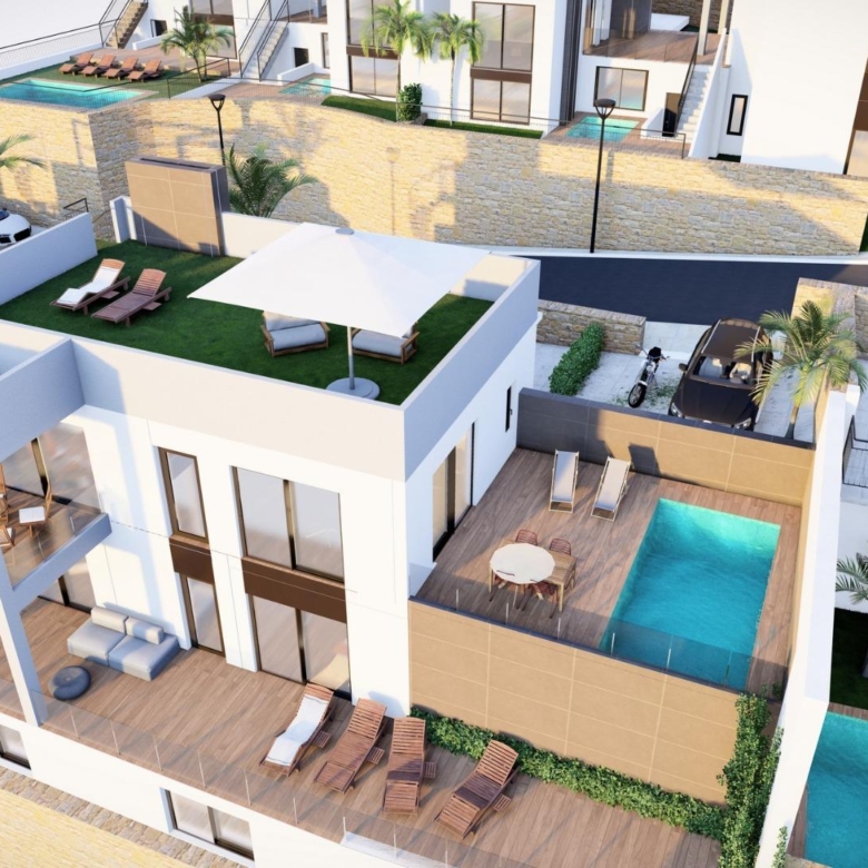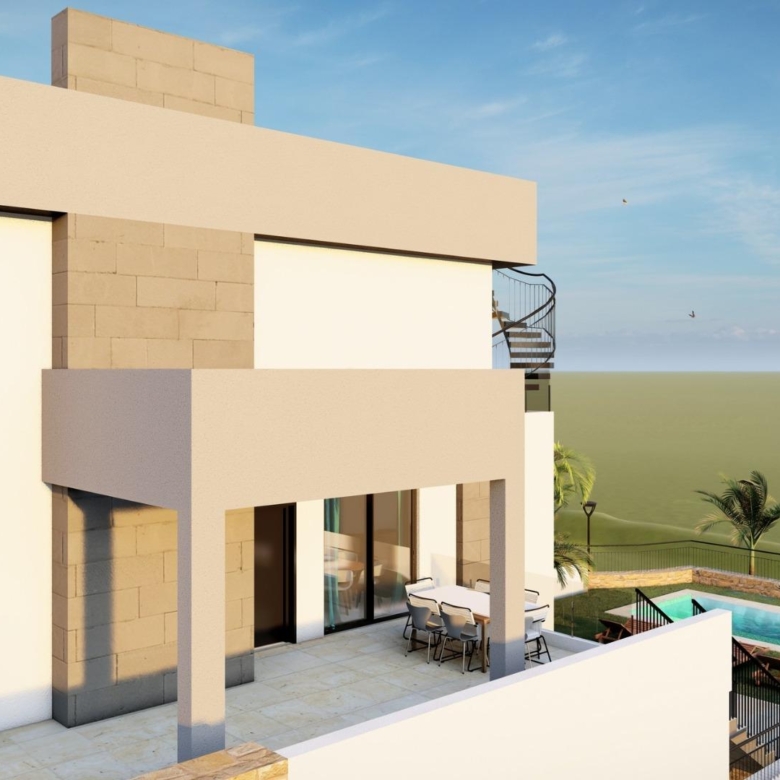 Estas viviendas disponen de planta de día, planta de noche, y planta semisótano, muy versátiles que se adaptarán completamente a sus necesidades; así como solarium y terrazas cubiertas y descubiertas, con vistas a toda la comarca de la Vega Baja del Río Segura.