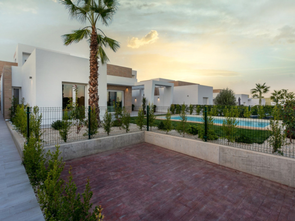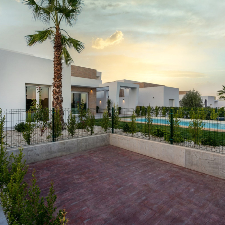 Las Villas Andros, ubicadas en La Finca Resort, forman parte del Residencial Mar Egeo. Estas modernas villas se distribuyen en una sola planta con opción a sótano. Las viviendas cuentan con 3 dormitorios, 2 baños, cocina con barra americana y amplio salón con acceso al jardín. Además, la zona exterior ofrece una gran terraza, una pérgola de obra, un jardín privado y una piscina privada. La Finca Resort se encuentra a 4 minutos de la localidad de Algorfa, provincia de Alicante, en la Costa Blanca Sur. El complejo ofrece multitud de servicios así como unas magníficas comunicaciones. A pocos kilómetros se encuentra la autovía, que te conecta con las principales ciudades de la zona como Alicante, Elche o Murcia, en muy poco tiempo. También dispone de una carretera comarcal que te llevará en pocos minutos a las hermosas playas del Mediterráneo. El resort en sí cuenta con fantásticos campos de golf, farmacia, varios restaurantes, supermercado, bodega propia, centro de SPA, un completo centro deportivo con sala de fitness y un maravilloso hotel de 5 estrellas. A 20 minutos se encuentra el magnífico y enorme centro comercial «La Zenia Boulevard», donde podrá encontrar todo tipo de tiendas, desde moda y diseño, deportivas, supermercados, todo para mascotas, hasta juegos recreativos para adultos y niños. Hay 2 hospitales en la zona de IMED y Quirón, a una distancia de 20 y 25 minutos del Resort. También encontrará varios supermercados a 5 minutos del resort, así como todo tipo de servicios que puede ofrecer una zona internacional. Elegir tener una vivienda en el resort La Finca es elegir un estilo de vida único, donde disfrutarás de tranquilidad, seguridad, variedad gastronómica en sus diferentes restaurantes, además de poder disfrutar todos los días de sus campos de golf. Vivir en el resort La Finca es tener calidad de vida. Disponemos de una amplia cartera de propiedades en las zonas de la Costa Blanca y la Costa Cálida, especializada en fincas, villas, fincas, solares edificables y opciones de diseño y construcción en las regiones de Alicante y Murcia. Ahora nos estamos expandiendo para cubrir las ciudades costeras de Ciudad Quesada, Algorfa, Orihuela Costa, Playa Flamenca, Pilar de la Horadada, San Pedro del Pinatar y muchas más áreas circundantes. Estamos establecidos desde 2004 y tenemos décadas de experiencia entre el equipo que aportamos para ayudarlo a encontrar y asegurar la nueva casa de sus sueños. Te ayudamos en cada paso del camino para asegurarnos de que tu compra en España sea segura y sin complicaciones. No estamos aquí para venderle una propiedad, estamos aquí para ayudarlo a realizar su sueño y encontrar lo que es adecuado para usted.