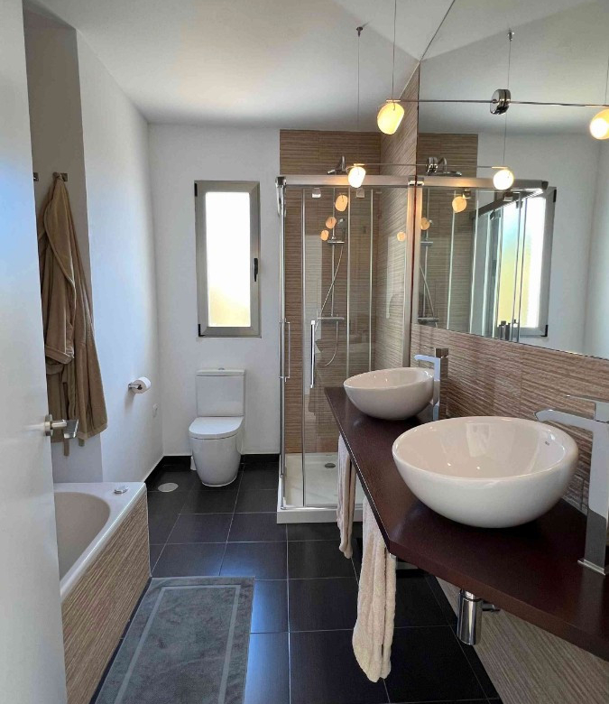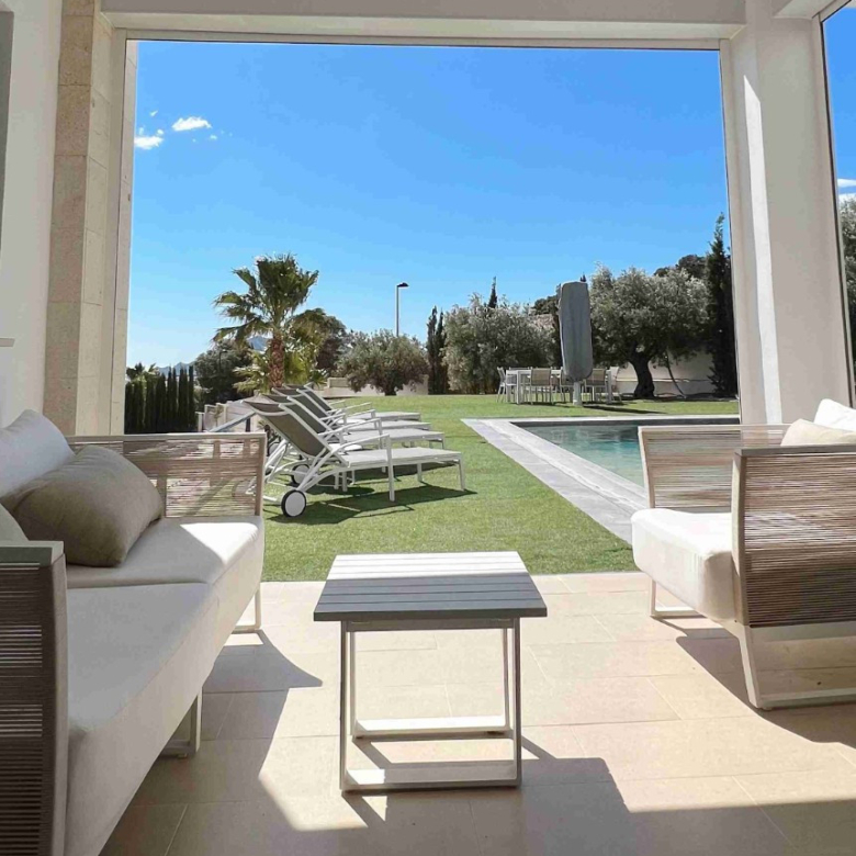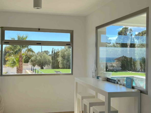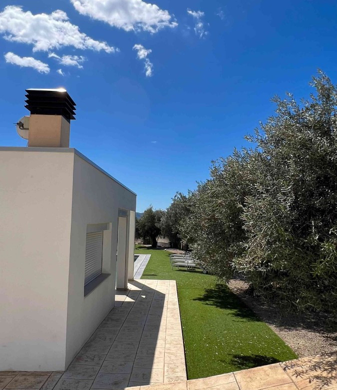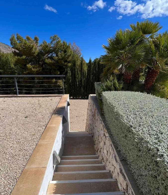 La casa tiene magníficas vistas al mar, a la montaña y a la piscina, jardines de bajo mantenimiento con sistema de riego automático instalado, Aire acondicionado frío y calor y doble acristalamiento.