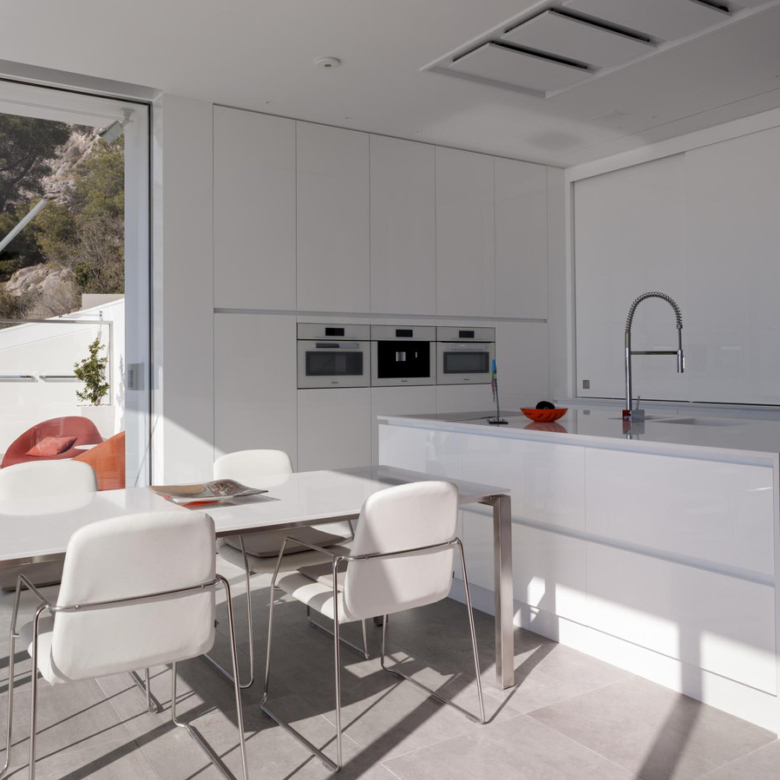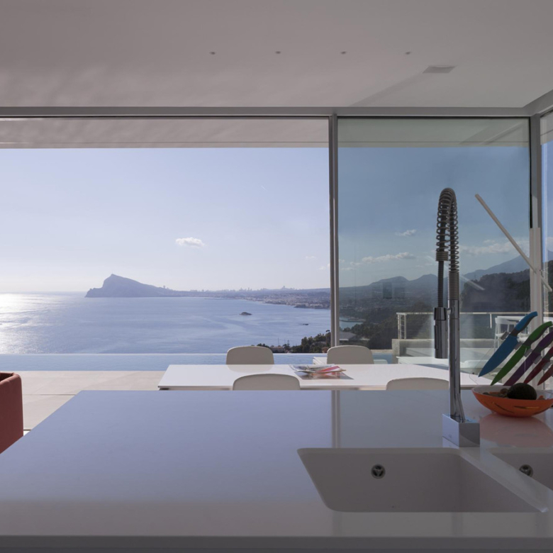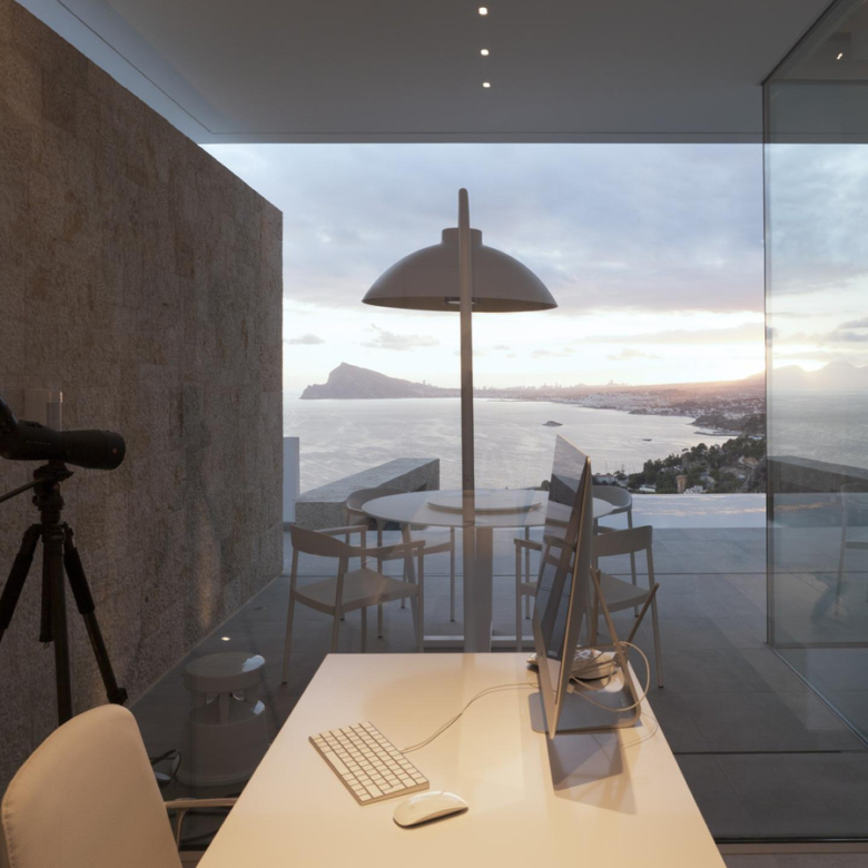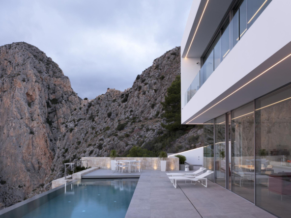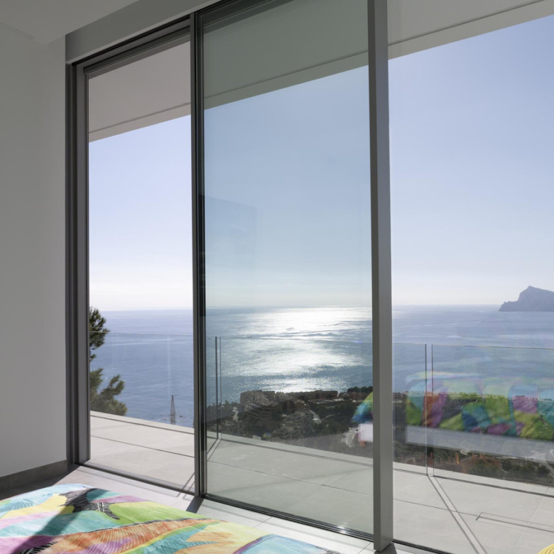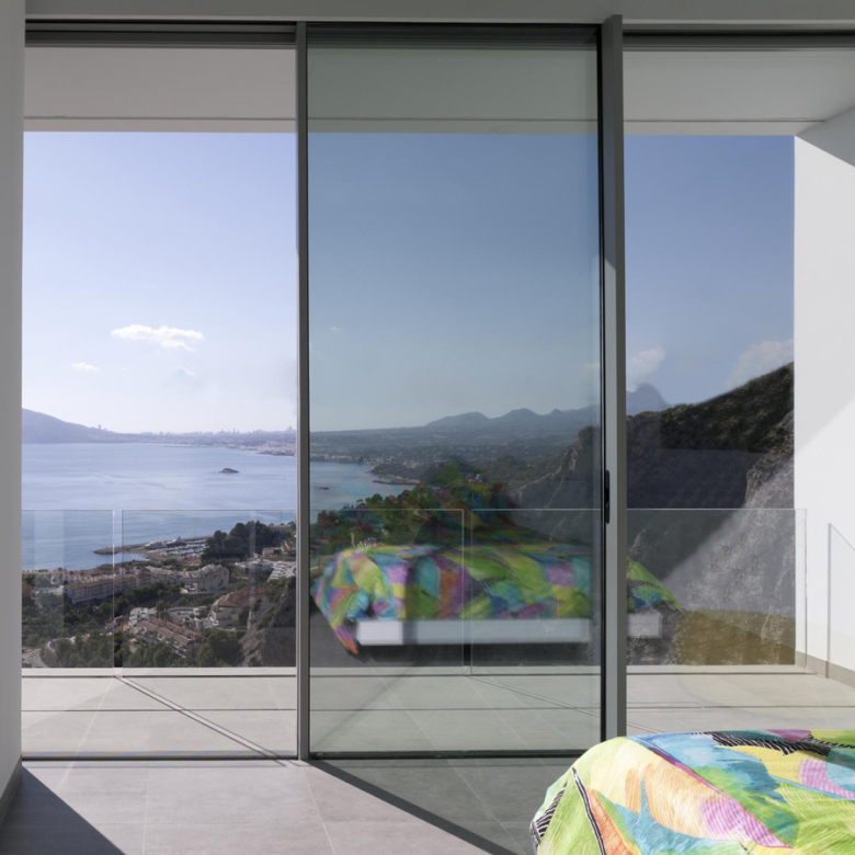 Moderna villa de lujo situada con una superficie construida de 221 m2, situada en un espectacular y tranquilo lugar de 1621 m2. El punto más alto de Mascarat, con las mejores vistas de la bahía, el mar Mediterráneo y el puerto de Campomanes.