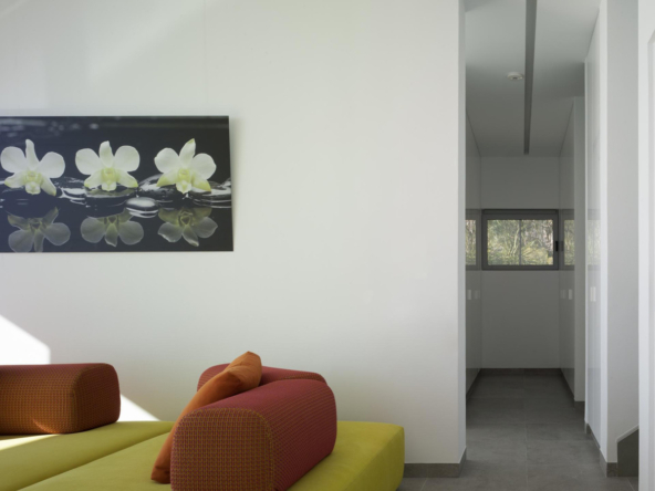 Desde el salón se accede a la terraza donde se encuentra la piscina infinita de agua salada climatizada de 12×3,5 m con cubierta. Debajo de la piscina encontrarás un amplio sótano multiusos que podrás amueblar a tu gusto.
