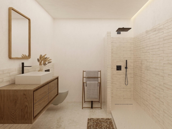 Esta impresionante villa de nueva construcción combina la elegancia de la arquitectura contemporánea con la calidez y el carácter del diseño ibicenco. Situada en la cotizada zona de La Fustera (Benissa Costa), disfruta de vistas panorámicas al mar y se encuentra a pocos minutos de la playa, supermercados, restaurantes y otros servicios esenciales.
